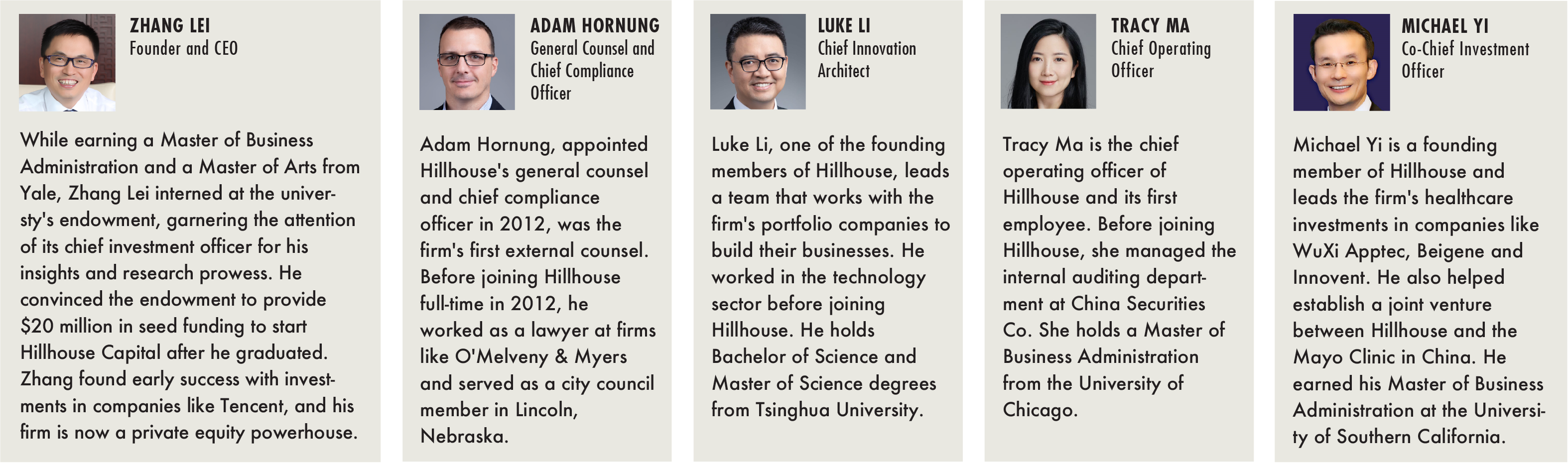 Every member of Hillhouse’s five-person management committee has been involved with the firm since its founding. Here’s a look at who they are. Their biographical sketches can also be found here.