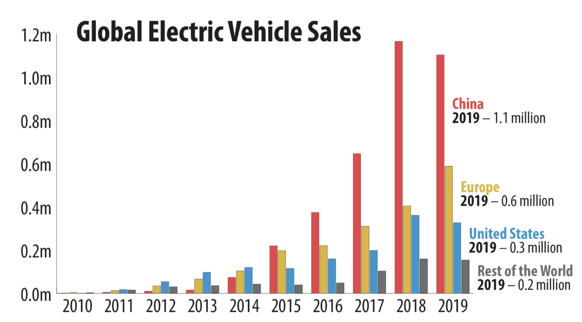 President Xi Jinping wanted to change that. In 2015, he made electric vehicles a cornerstone of his “Made in China 2025” plan — a strategy that combined his effort to turn China’s cheap labor economy into a high-tech hub with Beijing’s ongoing war against air pollution.3In 2010 China’s air pollution claimed 1.2 million premature deaths, 40 percent of the global total.