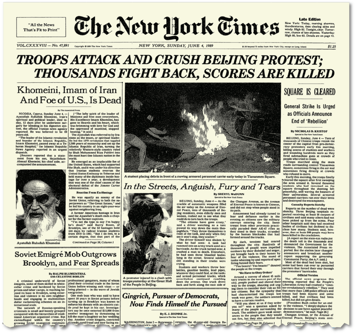 Some of the most striking work was done by journalists like Nicholas D. Kristof and Sheryl WuDunn, who shared a Pulitzer Prize for their coverage of the pro-democracy demonstrations in Tiananmen Square; work that included bicycling to local hospitals to tally up casualties in the aftermath of the bloody massacre that occurred on June 4, 1989. Evan Osnos, of The New Yorker, wrote elegantly about the country’s economic drive, its economists and entrepreneurs, and a new “age of ambition.” Ian Johnson, who was at the Wall Street Journal at the time but later reported for the New York Times, won the Pulitzer Prize in 2001 for his depiction of the government’s suppression of the Falun Gong, a Chinese spiritual movement. And in 2017, Josh Chin and Liza Lin, wrote some of the earliest stories on China’s surveillance state for the Wall Street Journal.