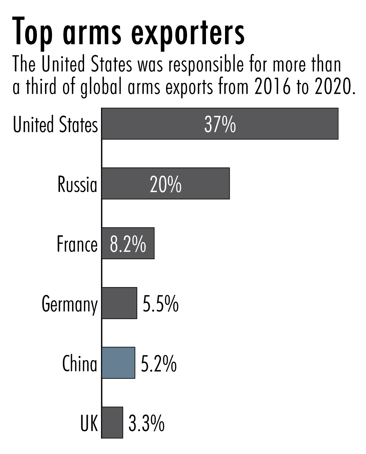 Indeed, although China is still the world’s fifth largest arms exporter — behind the U.S., Russia, France and Germany — its drone products have opened doors to new customers in at least four countries: Serbia, Turkmenistan, the U.A.E. and Uzbekistan, according to data from the Stockholm International Peace Research Institute.