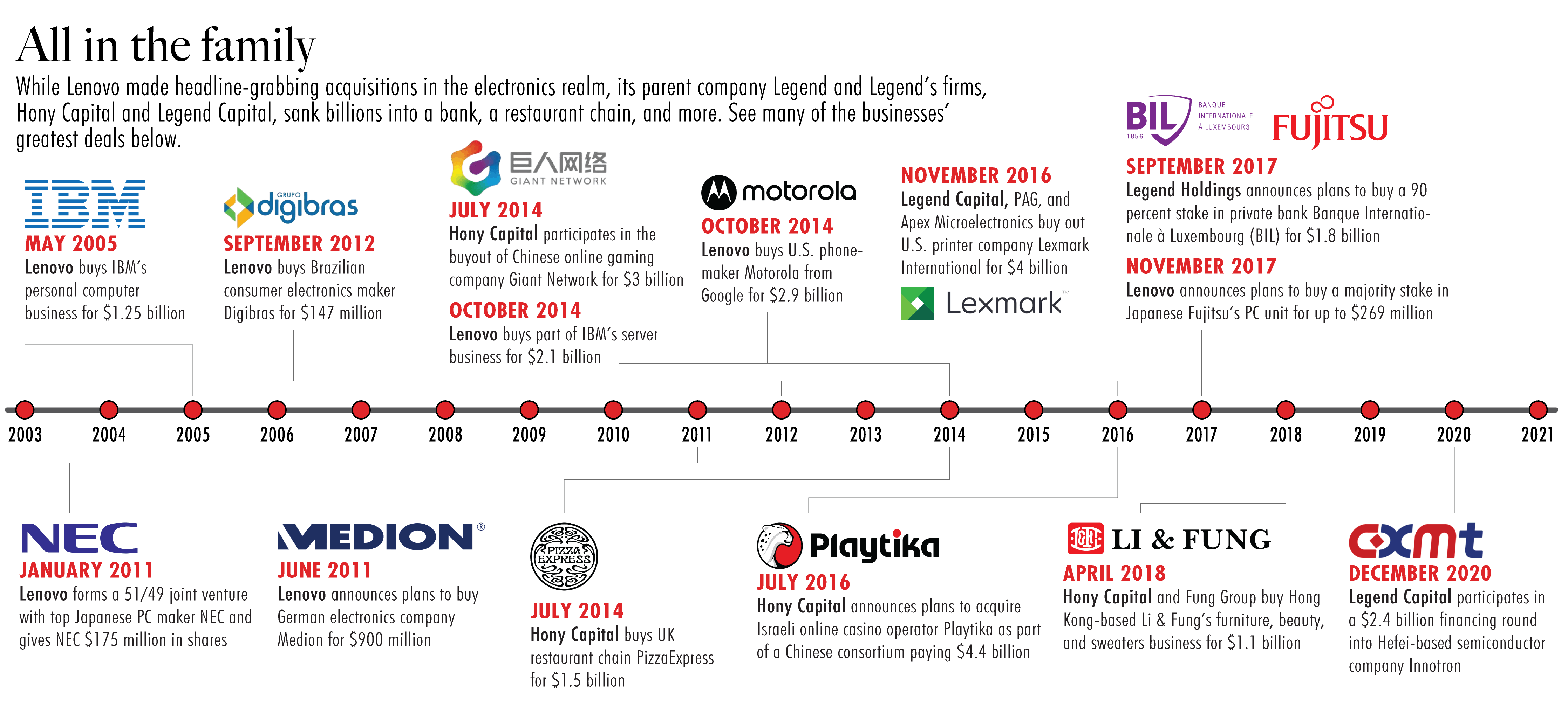 Lenovo has become part of a sprawling empire, with parent company Legend Holdings having expanded overseas both directly and through its affiliated private equity firms, which hold a combined $20 billion in assets under management.