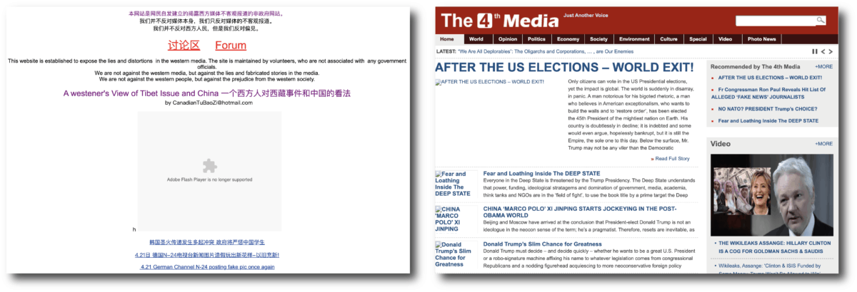 Right: Front page of The 4th Media, April Media’s English language outlet, November 23rd, 2016. Credit: Internet Archive