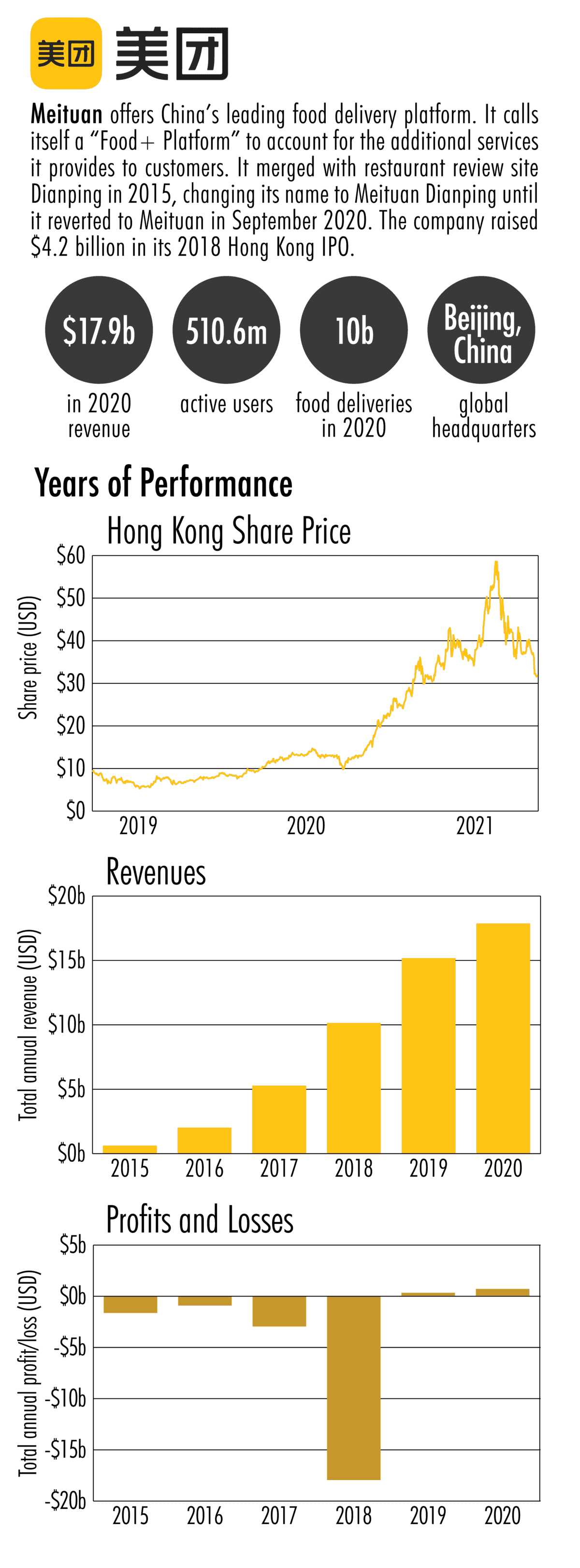As China’s tech sector comes under regulatory scrutiny, Wang finds himself in an uncomfortable position. His goal is to make Meituan “the Amazon of services,” but a push for greater dominance in the expanding O2O services market risks provoking more unwanted scrutiny. With industry leaders like Didi and Alibaba, Beijing has shown its willingness to knock tech giants down to size. With Meituan’s biggest rival, Alibaba, in the doghouse, however, there is also a temptation for Wang to go full steam ahead.