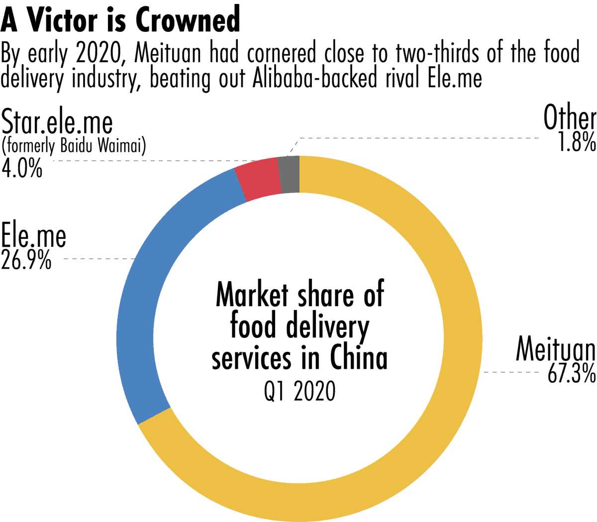 “They whooped Ele.me,” says Towson. “Meituan had better execution. Their playbooks weren’t that different. Wang Xing’s team is just better.”