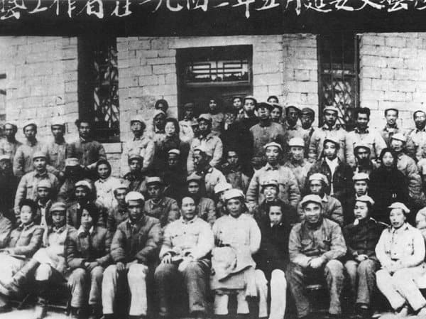 After dinner, a hanging lamp was rigged up in the courtyard and everyone moved outside to hear Mao’s closing speech. “Āiyā, this is not easy to do,” Mao could be heard muttering as he looked over his notes. But once he began to deliver his speech, his heavy Hunanese accent held everyone’s attention. “The problem of whom to serve,” Mao said, “is fundamental; it is a question of principle. All our literature and art are for the masses, and in the first place for the workers, peasants, and soldiers.”