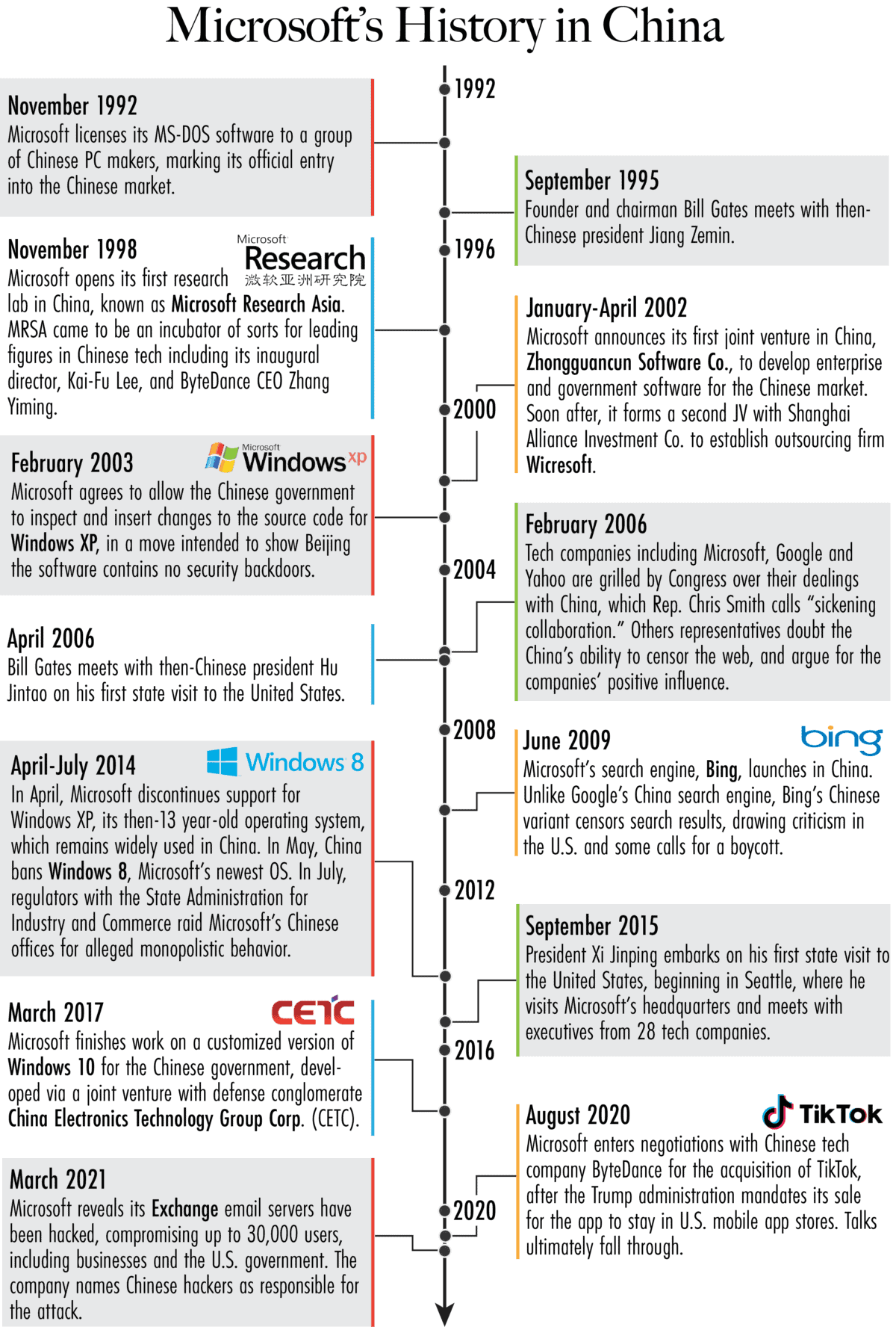 Seattle-based Microsoft has one of the longest relationships with China of any major Western tech company. Founder Bill Gates has met every Chinese leader from Jiang Zemin to Xi Jinping. Yet the returns on this long strategic investment are looking pretty meager these days. Microsoft garnered just 1.8 percent of its 2019 global revenue in China, company president Brad Smith said in January 2020.1Microsoft reported about $125 billion in revenue in 2019.