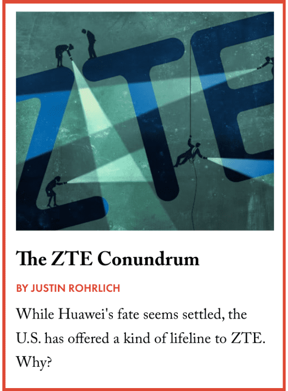 Also around this time, Huawei and ZTE, the Chinese telecom giants, were both accused of violating U.S. sanctions by supplying goods to Iran and North Korea. While both companies were espionage challenges — U.S. officials had little doubt they would support Chinese spycraft — the firms were also seen as the first battle in a long struggle for technological dominance.
