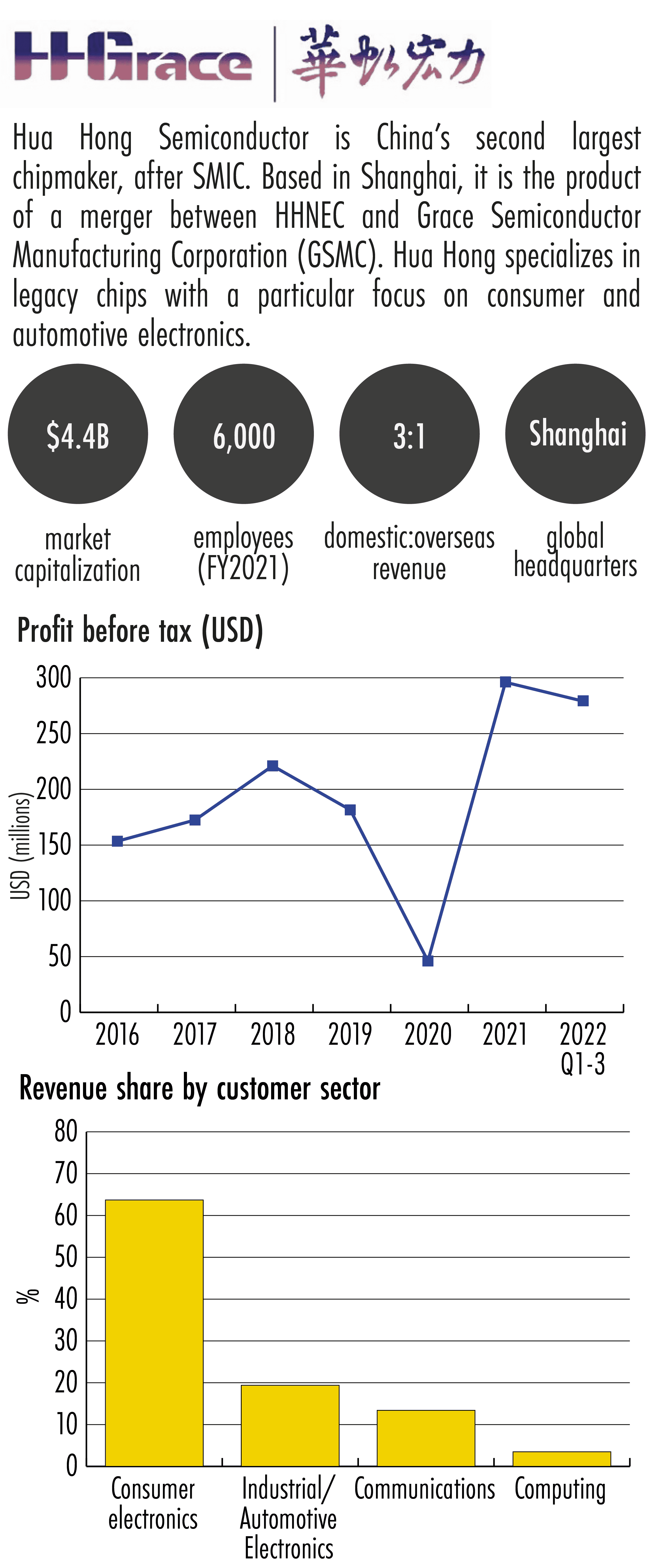 The company is the product of a 2011 merger between two Chinese chipmakers, Hua Hong NEC Electronics Co. (HHNEC) and Grace Semiconductor Manufacturing Corporation (GSMC).