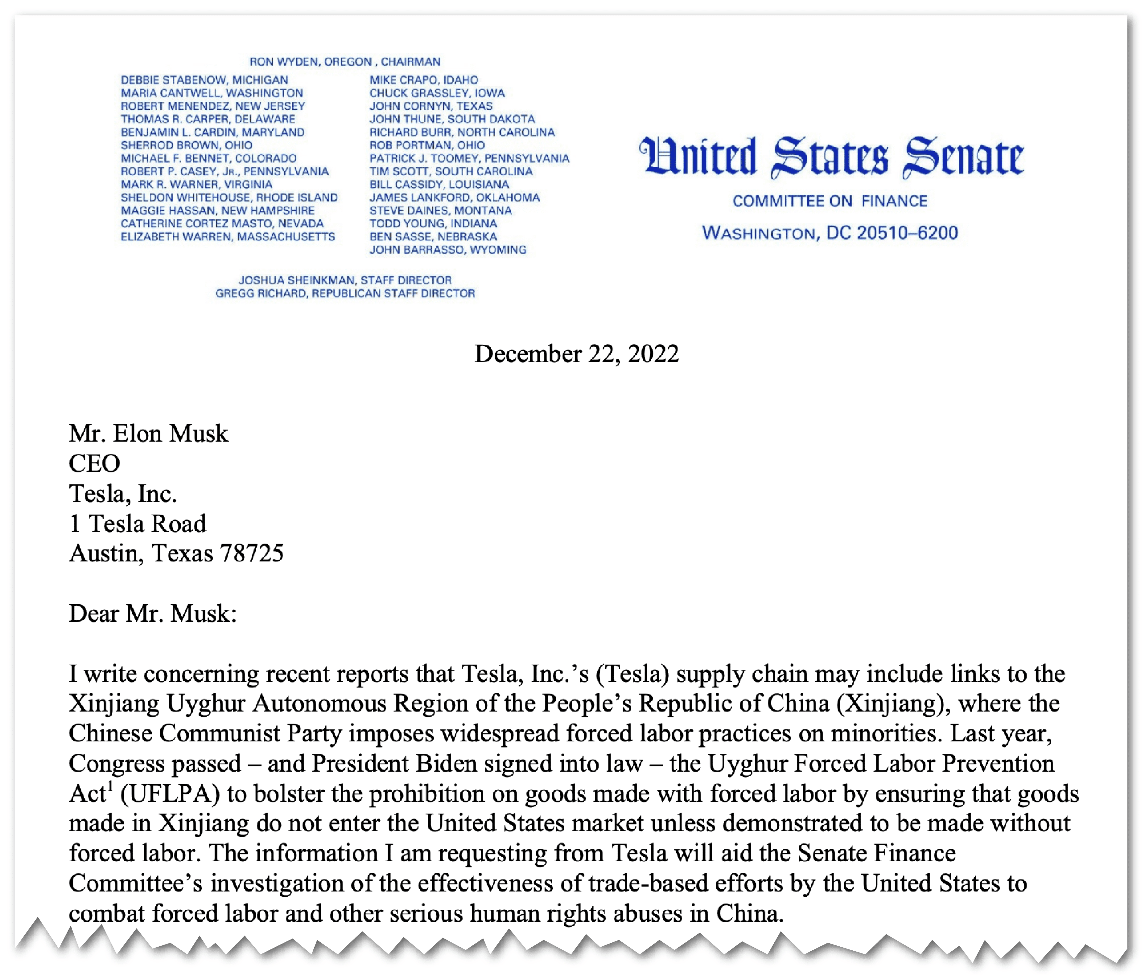 The IRA, along with other Washington policies encouraging companies to re-shore supply chains and reduce dependence on China, will mean that Tesla will need to create some distinction between the supply chains in its two largest markets and manufacturing hubs. Late last year, for example, the U.S. Senate began an inquiry into car companies’ exposure to Xinjiang due to labor rights violations and a new U.S. law that restricts imports from the Chinese region. The Senate sent letters to eight companies, including Tesla, asking them to explain any supply chain nexus and their efforts to mitigate any involvement in labor rights violations.