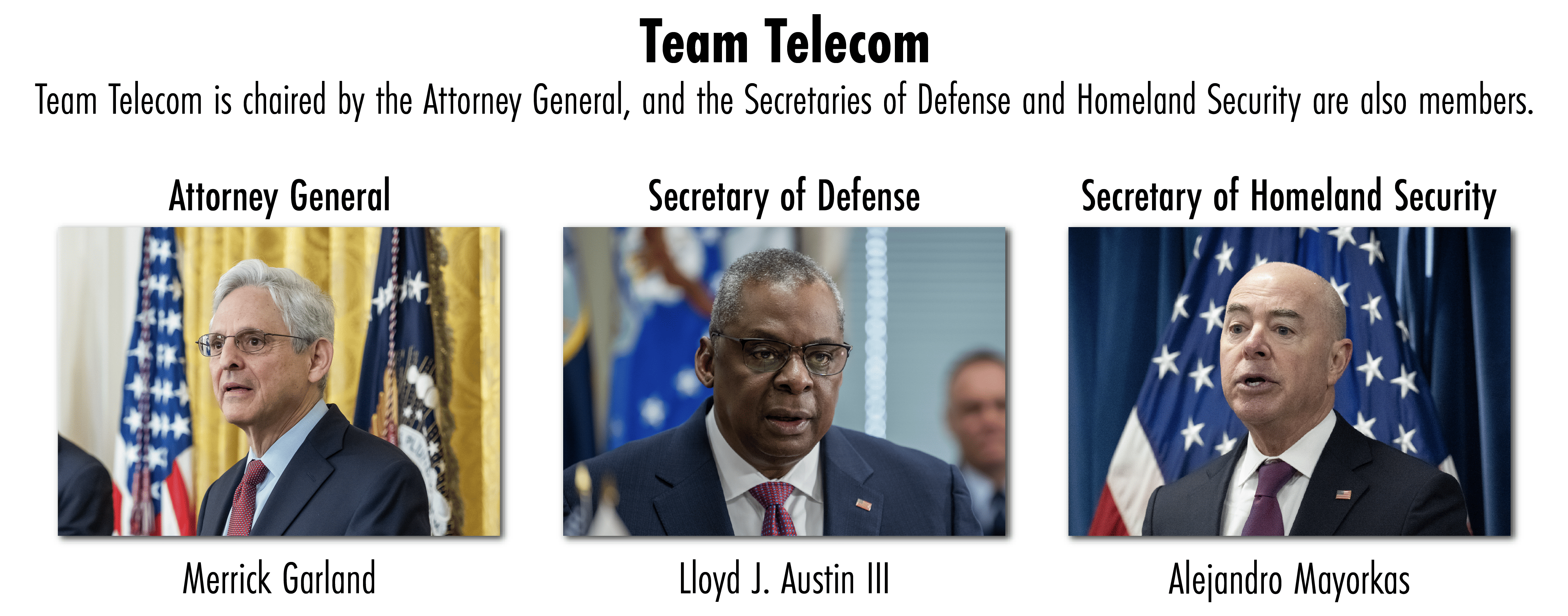 Team Telecom — which is separate from the FCC, chaired by the attorney general and composed of cabinet officials, including the secretary of defense and the secretary of homeland security — has since emerged as a leading protector of cable projects all over the world. It is often compared to the Committee on Foreign Investment in the United States (CFIUS), which has the power to block private acquisitions by foreign firms.