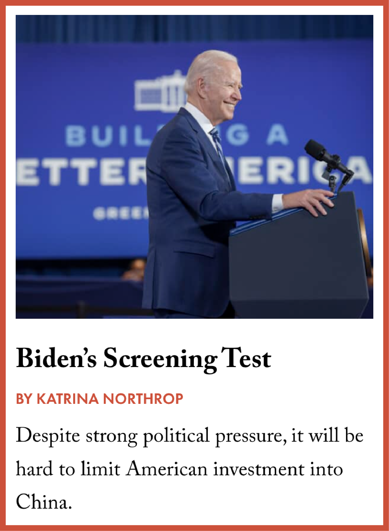 Perhaps there needs to be some sort of coordinated foreign direct investment screening as well. The United States has had a relatively sophisticated FDI screening regime for a long time. But the nature of globalization and globalized supply chains means that the European market and the Australian market and the Japanese market are very much intertwined with those in the United States, China, Vietnam, India, and so on. One company may not necessarily only have operations in one country. A more coordinated FDI screening regime from the United States and its allies and partners is relevant in terms of expertise sharing and due diligence investigation in cross-border investments. No one country can guard against multi-jurisdiction acquisitions by highly-motivated sovereign investors.