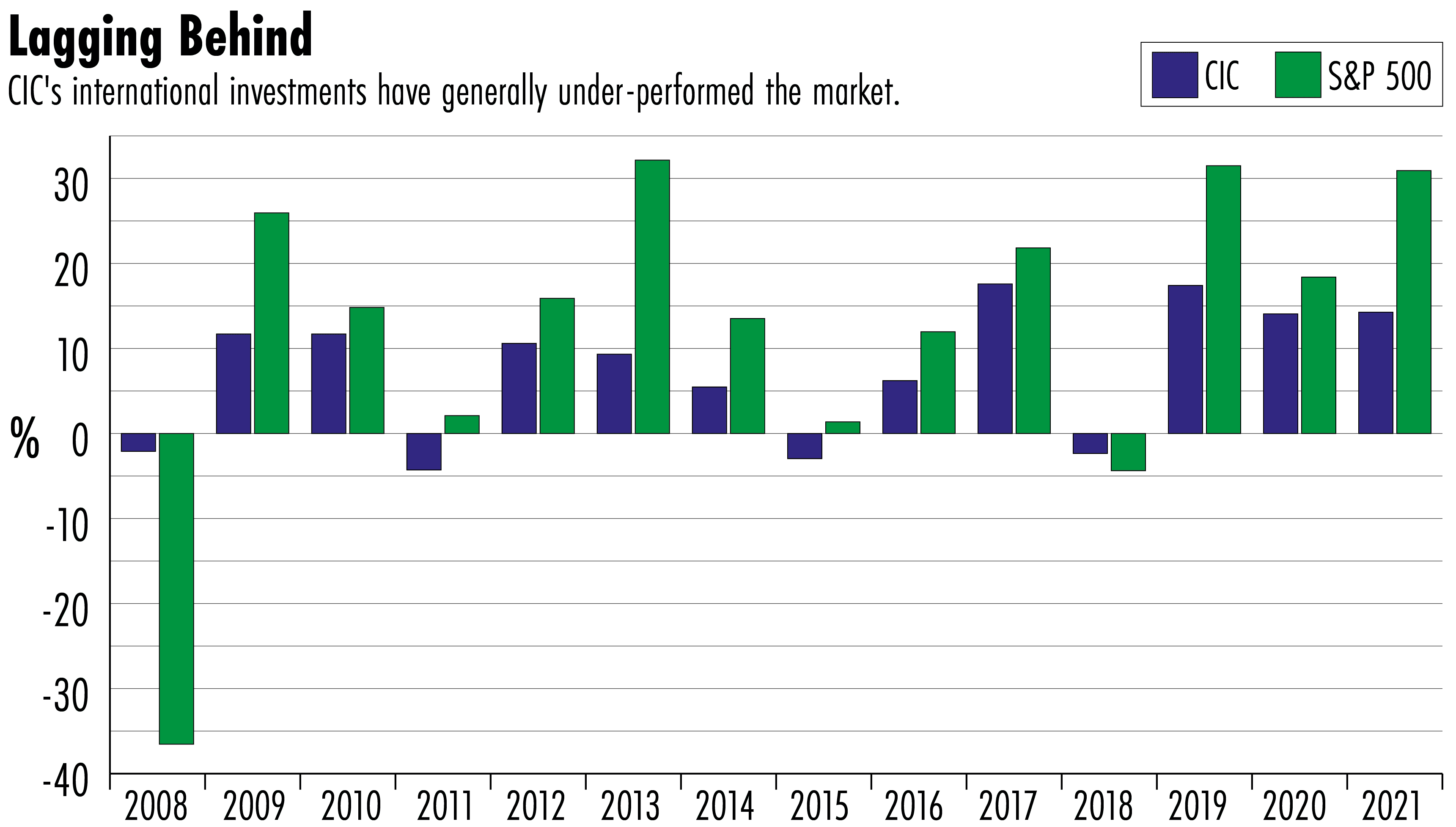 Yes, in the early years, CIC’s investment record was not great. Looking at CIC’s international investment performance, benchmarking it against a global portfolio, it’s at most mediocre either compared to its international peers, or even the S&P 500 — in many years, it’s lower. In other words, if you were to just passively invest in an index fund it would probably generate more return.