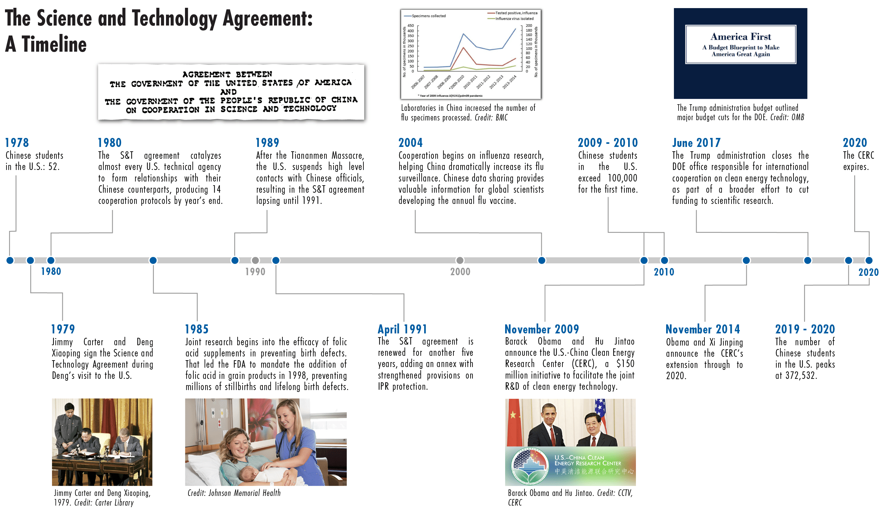 Later this month, one of the oldest bilateral agreements between the U.S. and China is set to expire. Signed in 1979, in the same month that the U.S. and China normalized diplomatic relations, the Agreement on Cooperation in Science and Technology has paved the way for four decades of research collaboration between the two countries. U.S. President Jimmy Carter called it part of an “irreversible course” in Chinese‐American relations. His successor, President Ronald Reagan, called it “a cornerstone in our expanding relationship.” The agreement has long been viewed as a bare minimum for engagement — the simplest contours to facilitate cooperation on matters that transcend politics, from public health to climate change.