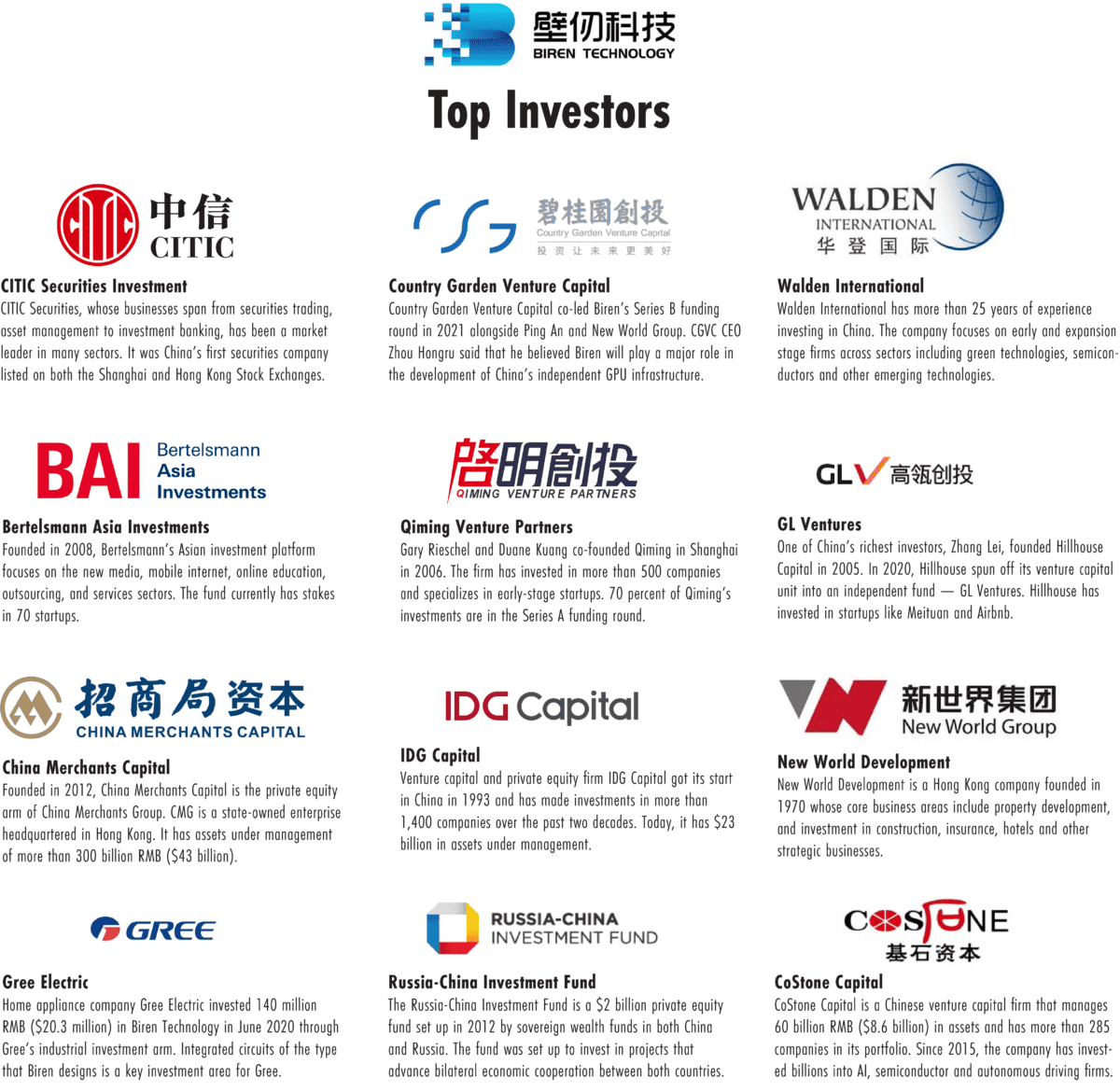 Read below to find out some of the top venture capital firms which have invested in Biren: