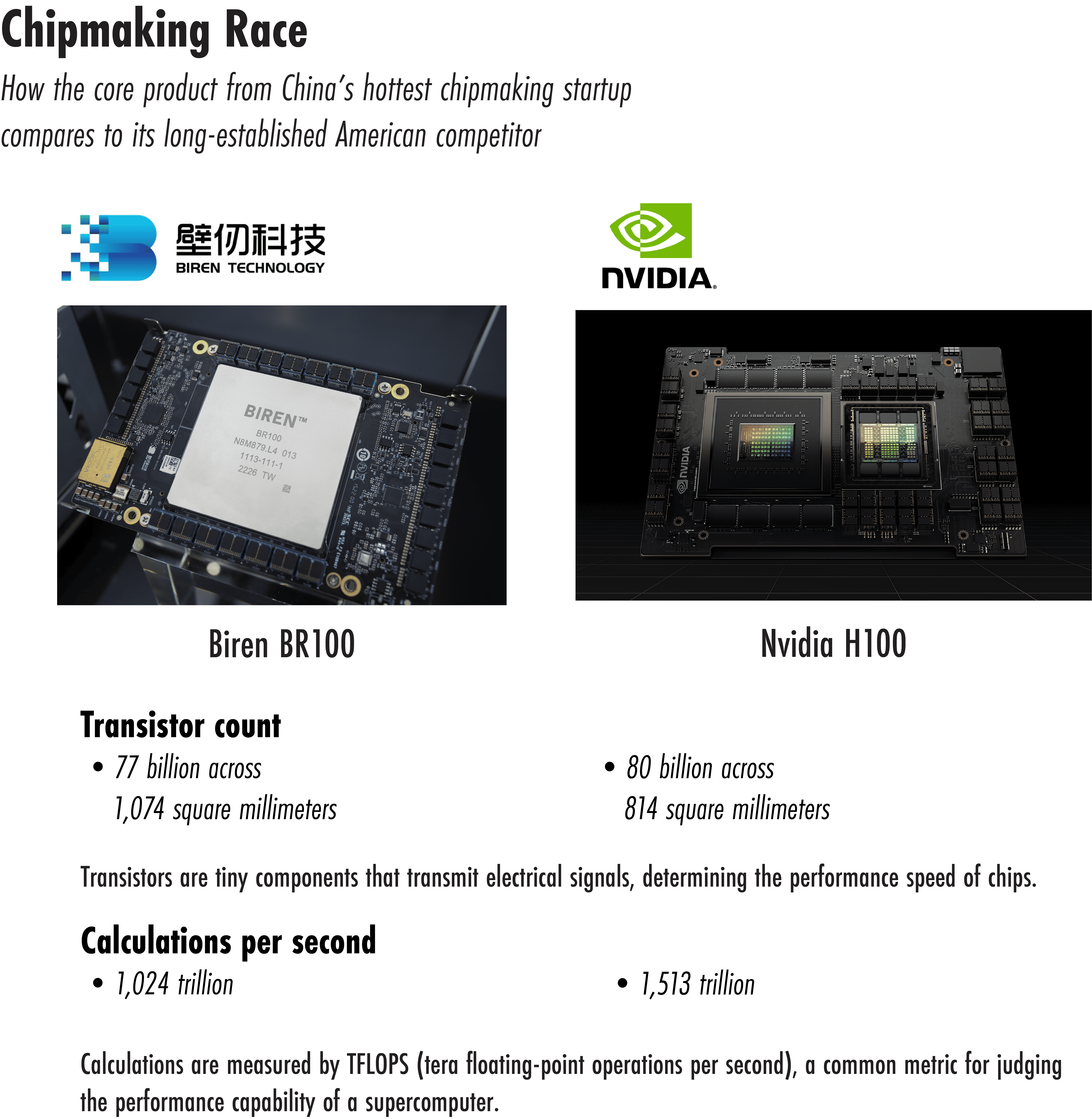 Biren, one of China’s newest startups in the critical field of advanced chips, already boasts products with capabilities only narrowly behind those of its leading American competitor, Nvidia. The company could be set for stock market listing in Hong Kong as soon as this year, according to reports.