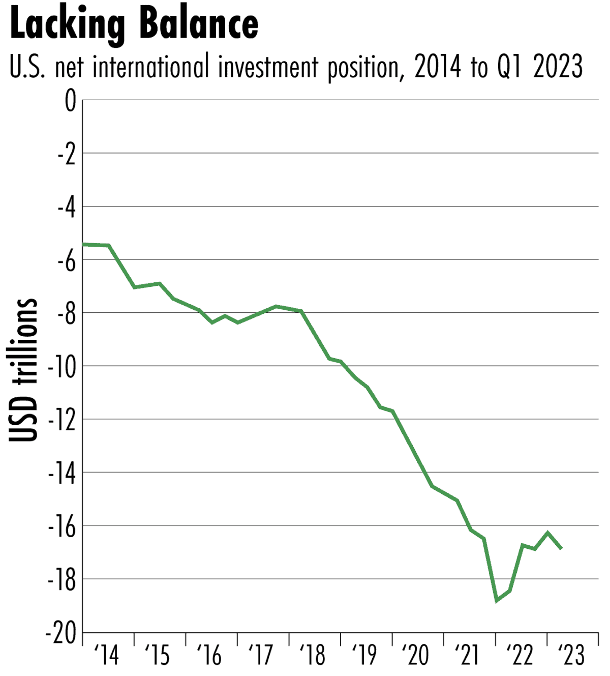In about 2003, at the time when he wrote, the net investment position of the United States was much smaller. If you’re not familiar with that data point, it calculates how much in assets all Americans own overseas versus how much everyone overseas owns in America. It’s called the net investor position of a country. When Warren Buffett raised his alarm, the net investment position of the United States was a negative $2.3 trillion dollars. That was alarming to him and he suggested we get back to balanced trade. And where are we today in terms of the net investments? We are now at a negative $17 trillion! To give you an idea of the size of that, if you took the 100 biggest companies in America, you could buy most of them and get some change.