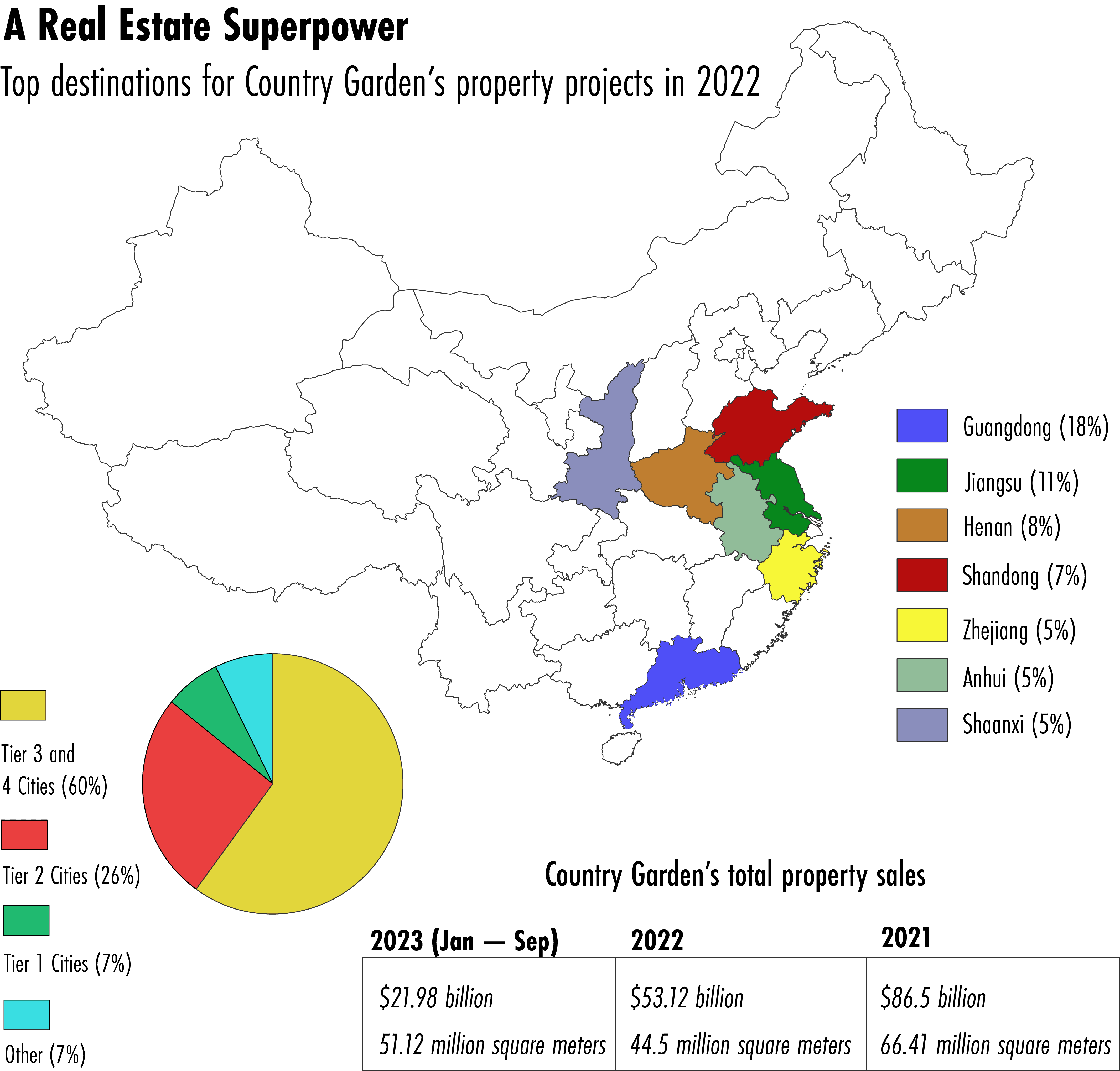 On October 10, Country Garden said its revenue from contracted sales for September had plummeted to 6.17 billion renminbi ($876 million), down 81 percent from the same month in 2022.