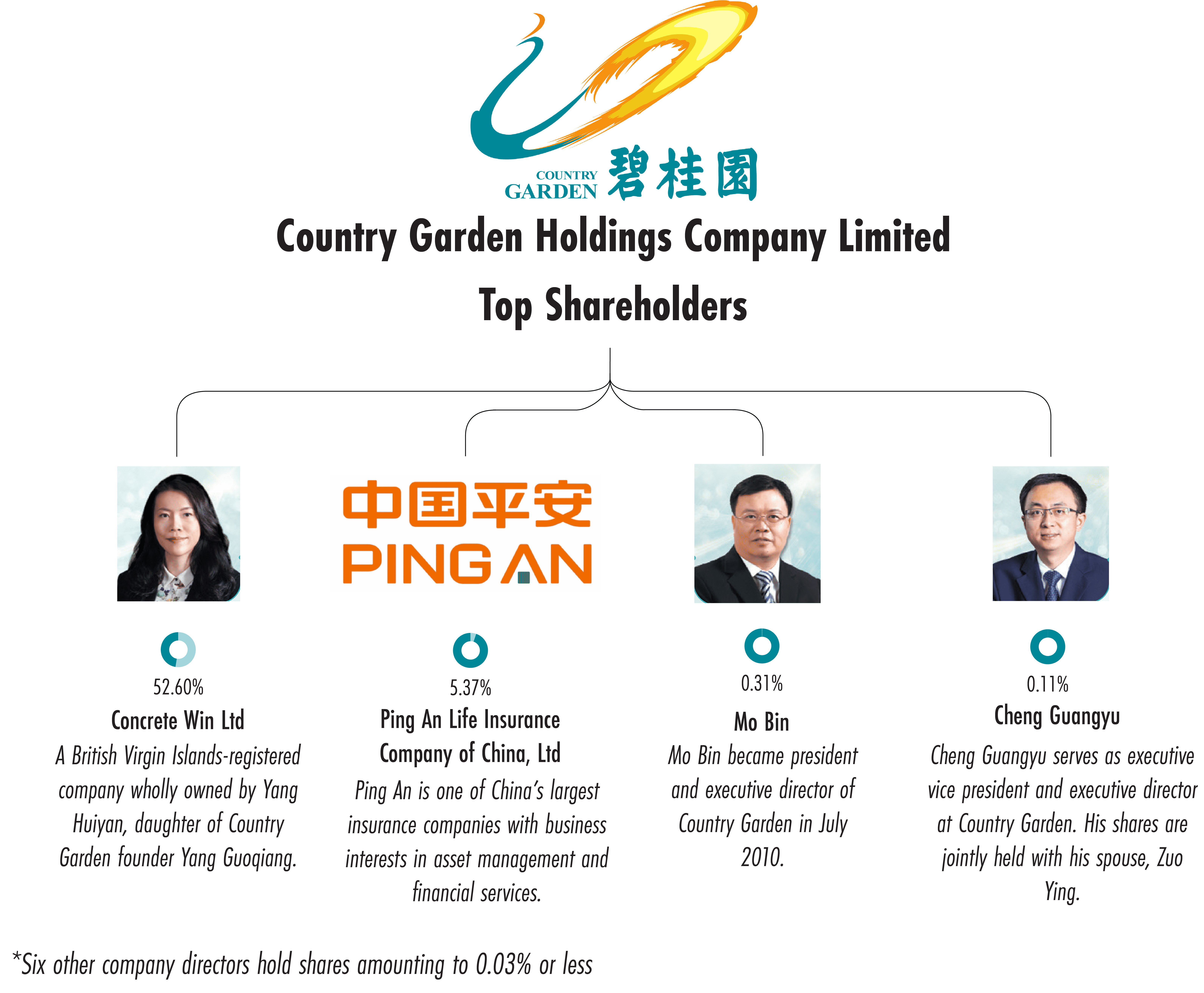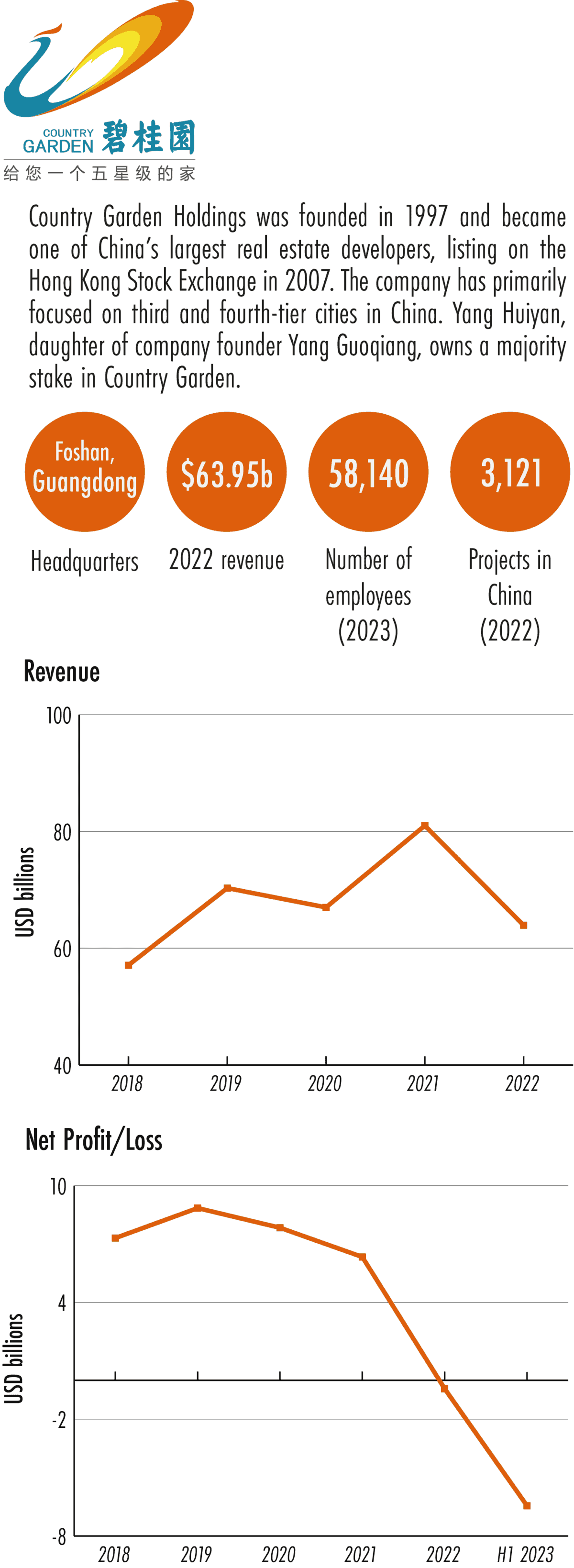 Country Garden’s subsequent growth followed the trend of urbanization and development across China. The company based the majority of its construction projects in third and fourth-tier cities, as well as in suburban areas outside major cities. In 2005 and 2006, Yang and other senior executives transferred a 70 percent stake in the company to Yang’s daughter, U.S.-educated Yang Huiyan, intending to train her as his successor in the family business.