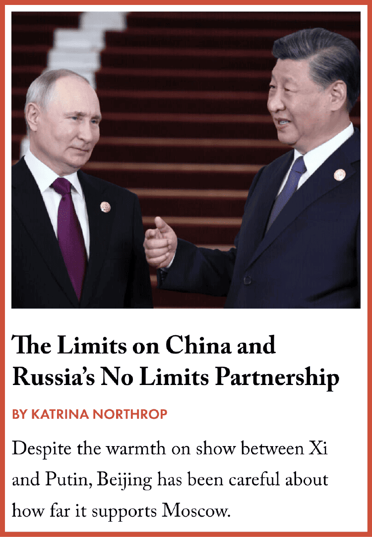 I also think he’s got to have picked up on at least some aspects of Russia’s invasion of Ukraine. As I said in the Foreign Affairs article, both Xi and Putin share the narrative that the West is in decline and that they’re only going to be in a better and better position. Xi feels like he’s got some time.