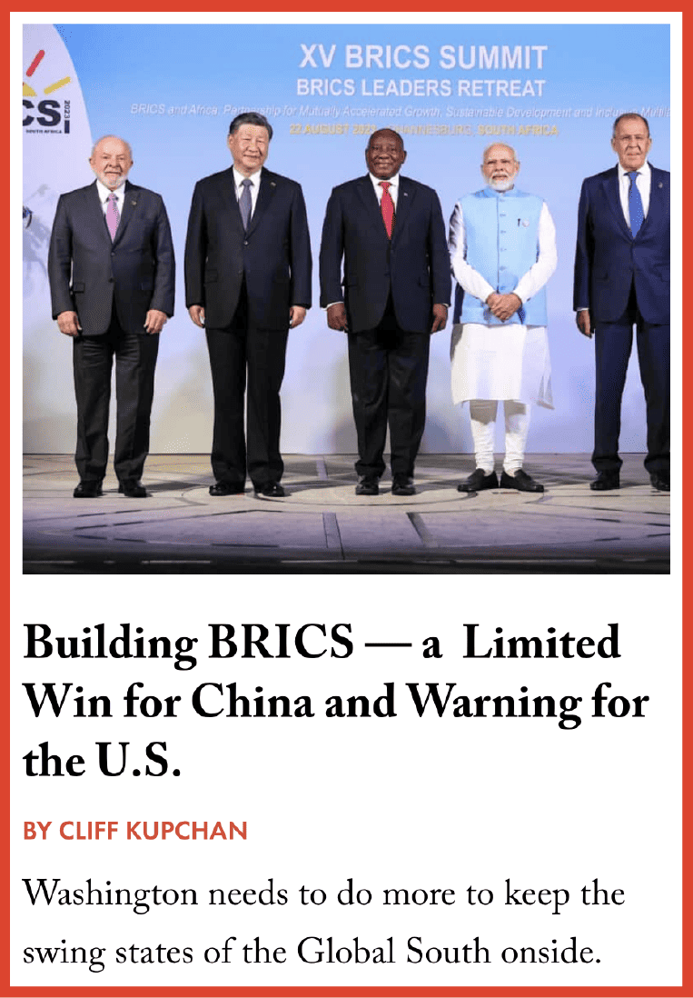 China also simply has a better narrative in the Global South. They look for our weaknesses. They look at every crack in the U.S.’s history of domination (and there are many) plus western colonialism, and they say, “I’m different”. They say they’ve never invaded a foreign country, which of course is not true. But do you think somebody in Bolivia knows that? Plus that narrative is so appealing to a country that is poor: China is a country from the Global South, it was poor like you, and with their help one day you could be like them. But frankly, I don’t think any Chinese official believes any other country in the Global South is ever going to be like them.