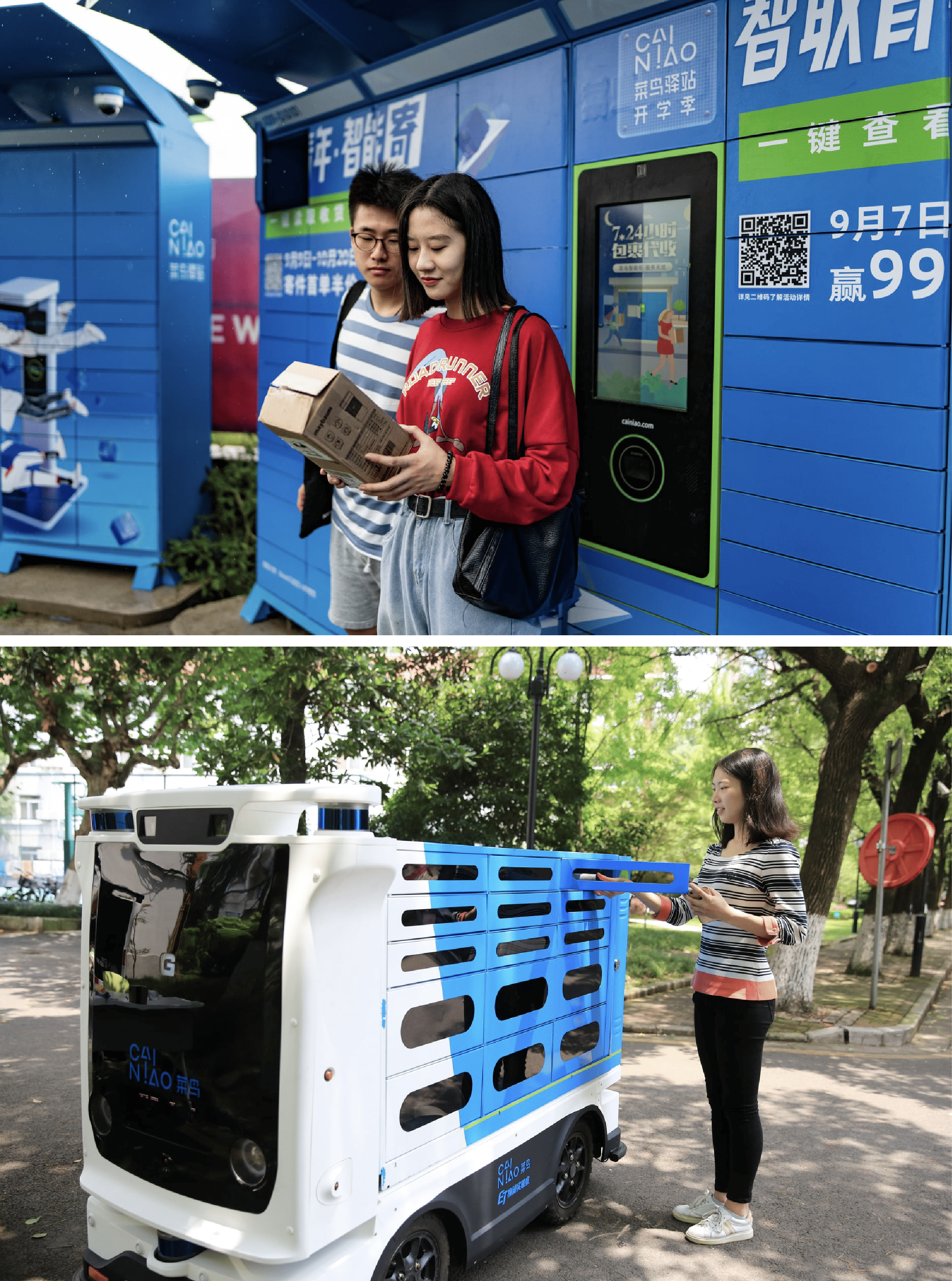 Through Cainiao, too, Alibaba has deployed a standardized digital waybill — those ubiquitous white, barcoded labels that tell a computer where a package is going — enabling customers to track their orders from a single app. And through a service called ‘Cainiao Post,’ it has over 170,000 package lockers where customers can pick up and drop off parcels, accelerating deliveries in dense urban areas like college campuses, and hard to reach rural places.