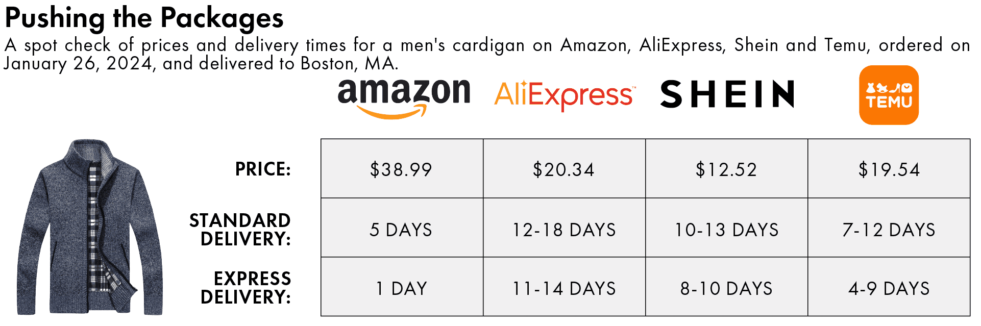 One dynamic keeping Amazon safe, for now, is that the trade-off remains fairly stark. AliExpress’ standard delivery times are improving, but still inconsistent in the U.S. and Europe.