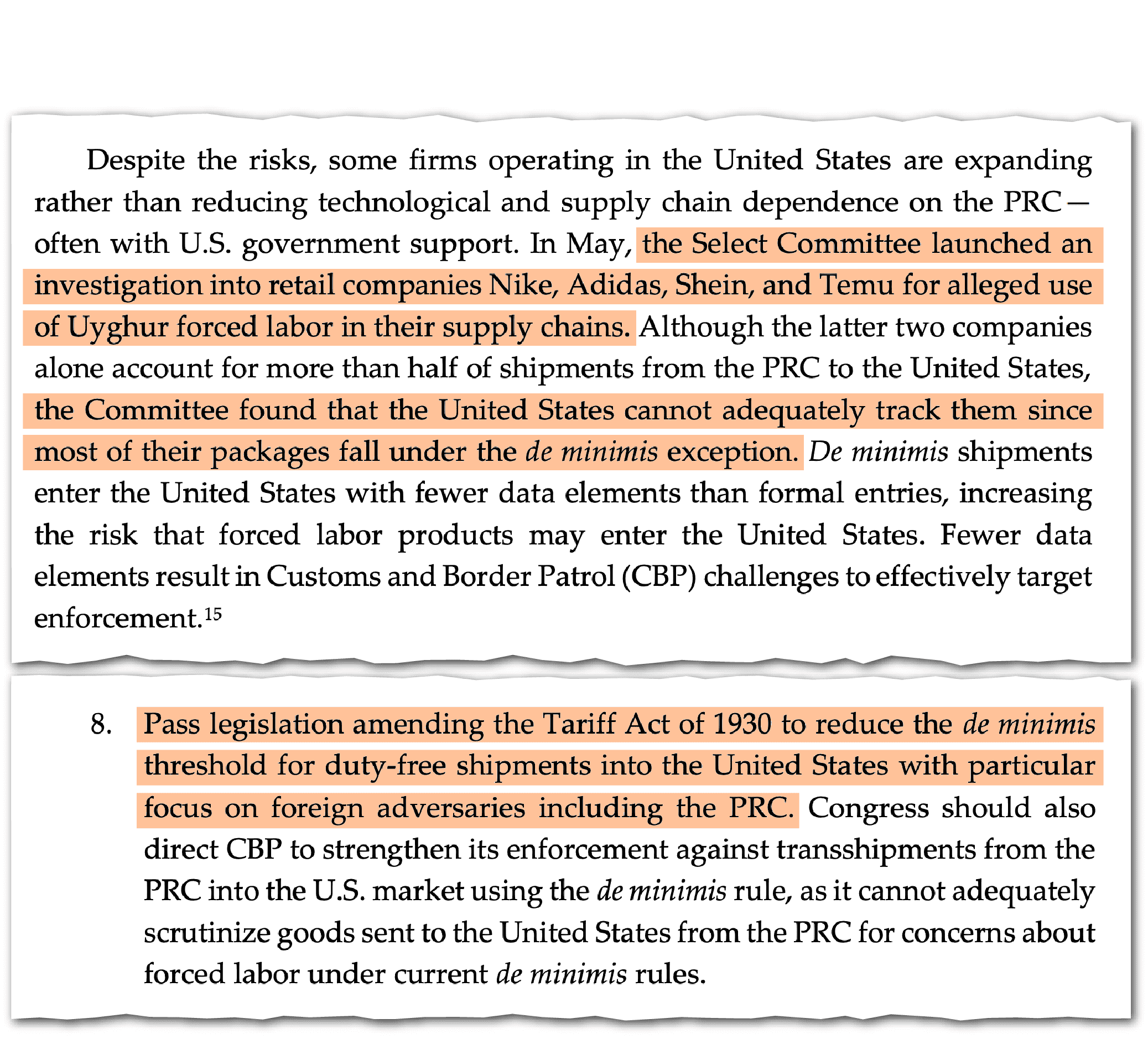 A bipartisan report by the House Select Committee on the Chinese Communist Party recently recommended significantly lowering the de minimis threshold. In June, Rep. Mike Gallagher, the committee’s chairman, accused Temu and Shein of “building empires around the de minimis loophole in our import rules — dodging import taxes and evading scrutiny on the millions of goods they sell to Americans.”