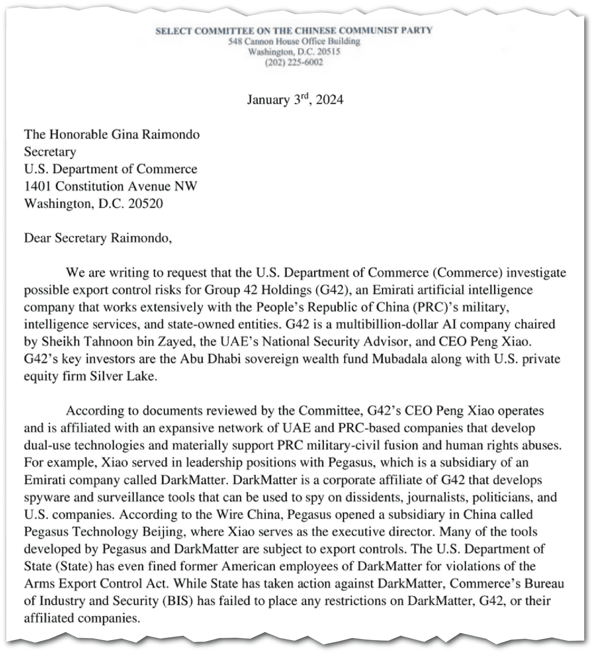 In a statement to The Wire, Beyond Limits said it did not move forward with the Dongying center plan, and that the company launched its Asia business before G42’s investment. “Our China operations have no connection with anyone from G42,” the statement said, adding that G42 has no influence on the company’s strategy. “We do not have any connection to any U.S. Intelligence concerns related to G42.”