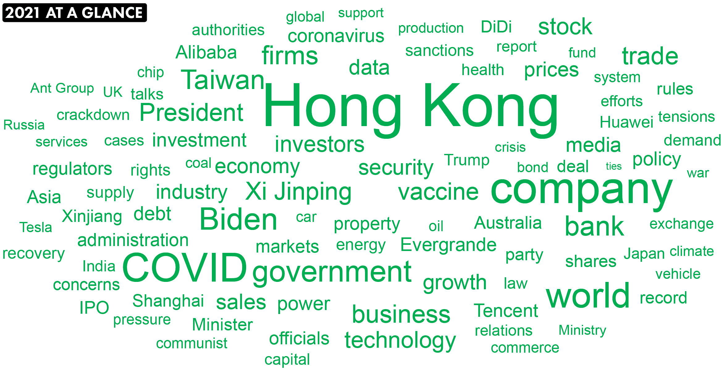 The pandemic dragged on as a major news story through 2021. But in the year Beijing’s crackdowns on the property and tech sectors started to bite, leading real estate firm Evergrande — along with tech giants like Alibaba and DiDi — rose up the news agenda.