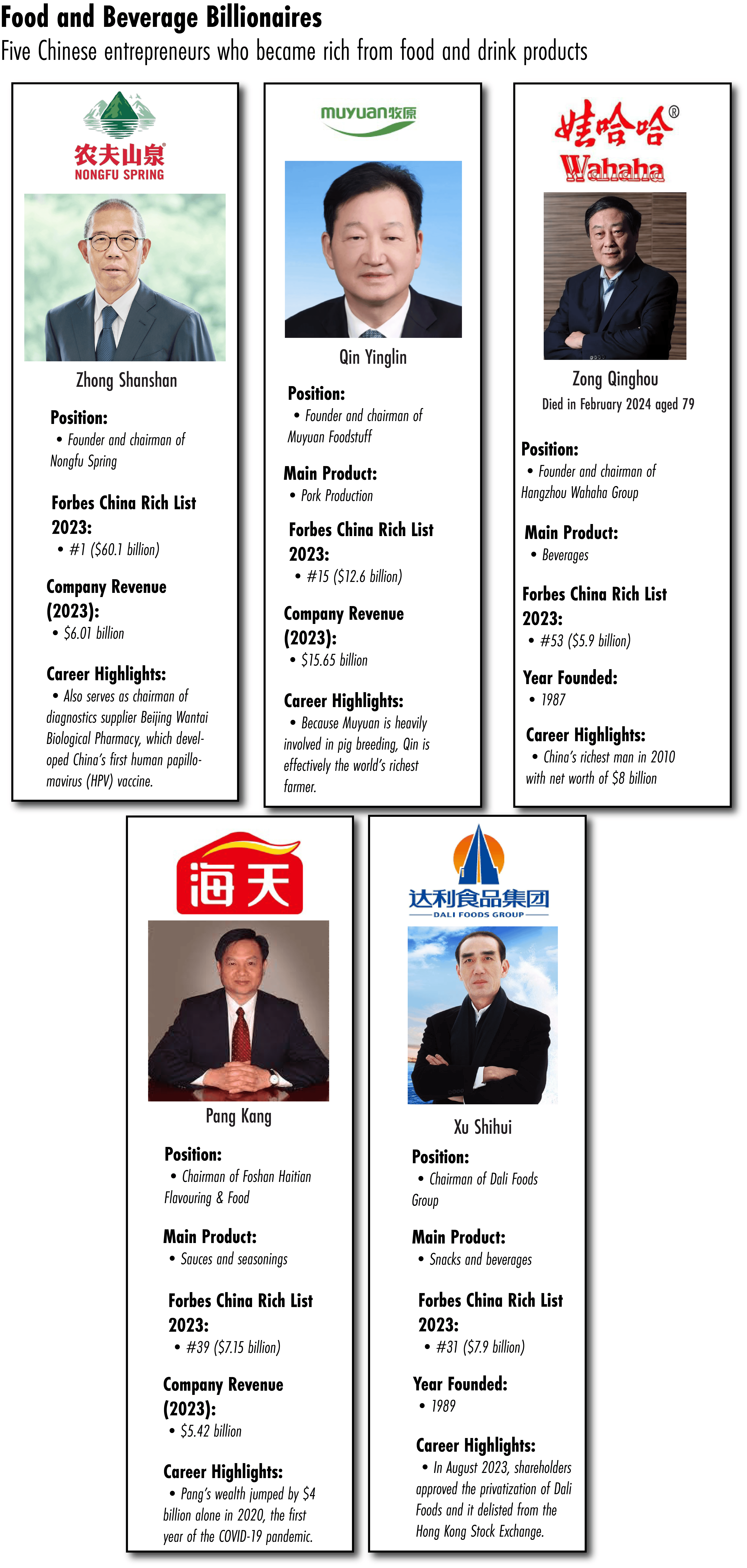 Meanwhile Nongfu’s surge in value after its IPO made Zhong the richest person in China in 2021, according to the Forbes Rich List: he stayed top in both of the following years, with a net worth now of $62.3 billion.