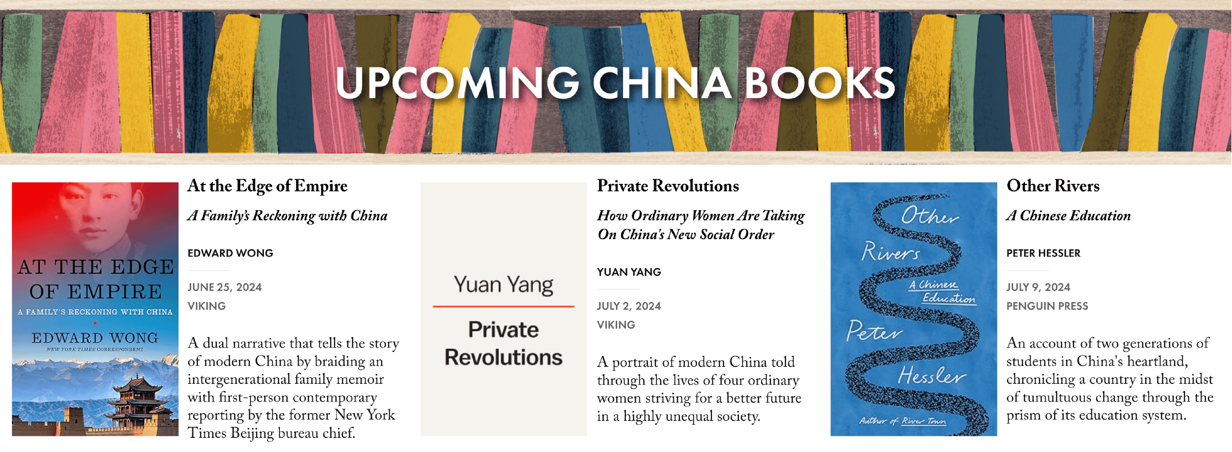 I hope that’s not the case, but I fear it may be, simply because there are fewer journalists and freelancers left in China to write that kind of book on the ground. There is a spate of such books coming out this year, such as Peter Hessler’s, Yuan Yang’s, and Ed Wong’s. But ever since the expulsion of journalists, there are fewer boots on the ground — or pens on the ground. So a lot of China books, which is a space I watch very closely, are being written at a distance.