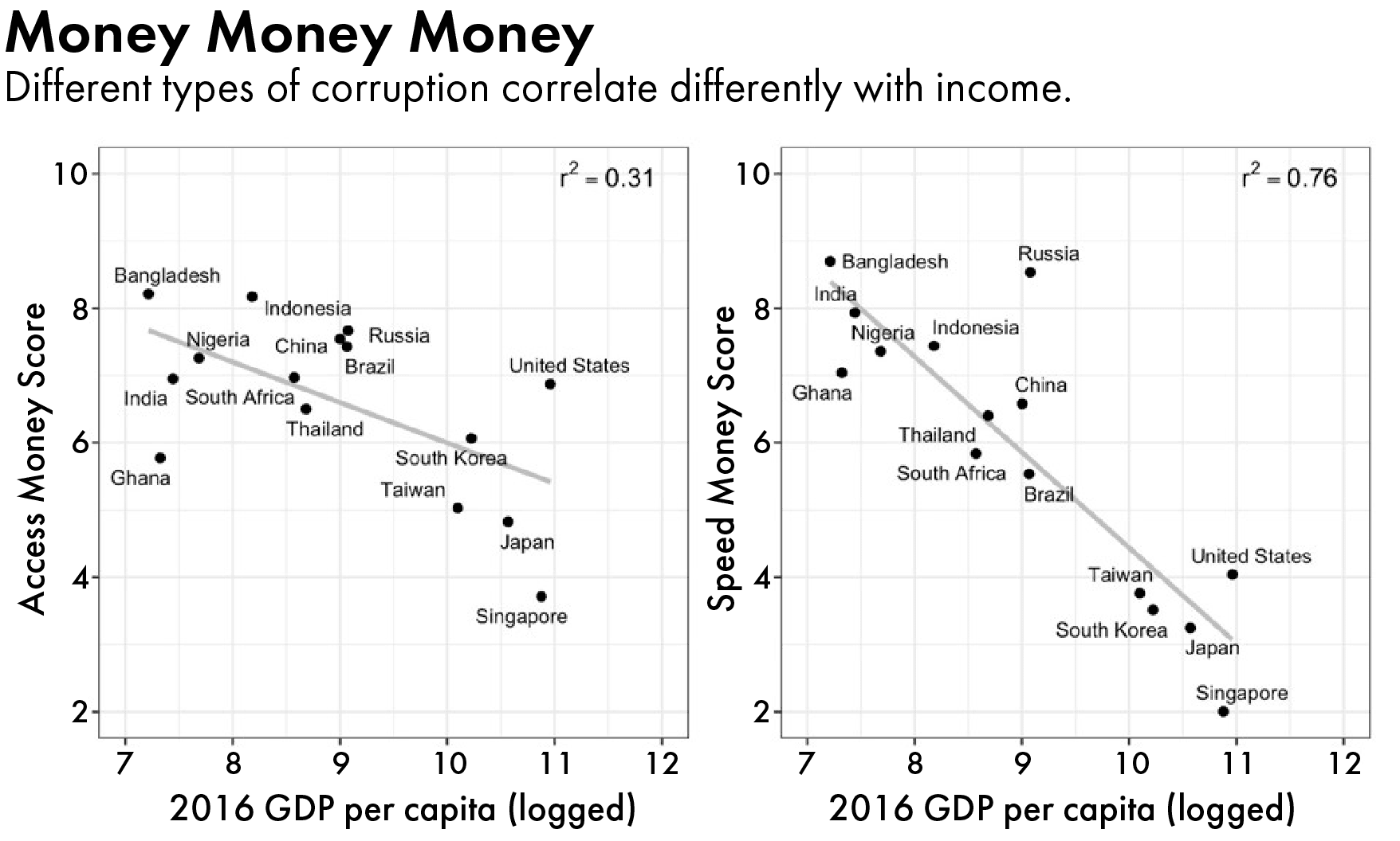 Even as it grapples with a slowdown, the Chinese economy has come a remarkably long way. Since embracing capitalism in the 1980s, China has leaped from being one of the world’s poorest countries to its second-largest economy. Even more remarkably, it has done so despite a relentless string of corruption scandals. Economist Paolo Mauro calls China a “gigantic outlier” for its combination of breakneck growth and widespread corruption.