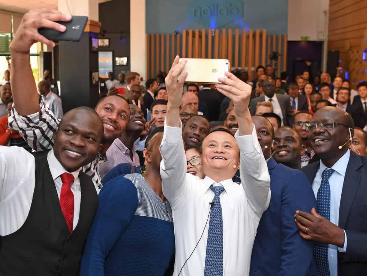 Left: Jack Ma with entrepreneurs in Kenya, July 20, 2017. In 2019, Jack Ma launched the Africa Netpreneur Prize Initiative as the Jack Ma Foundation’s flagship entrepreneur program. Right: Jack Ma speaks during Alibaba Group’s Global Conference on Women and Entrepreneurship, August 28, 2019. Credit: Alizila