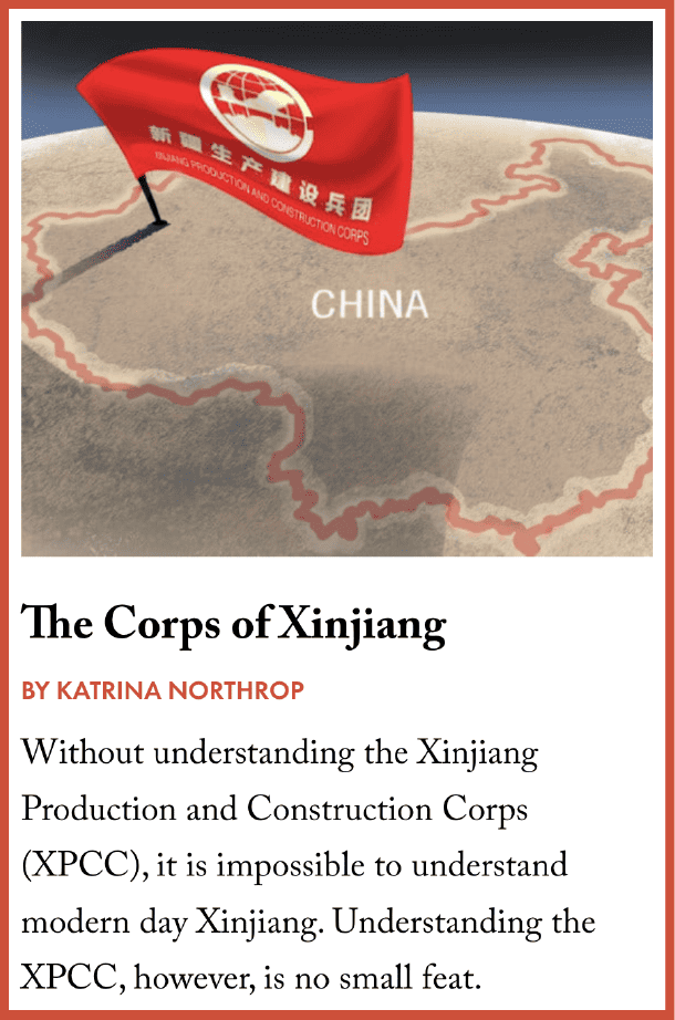 Founded in the 1950s by one of Communist Party Chairman Mao Zedong’s generals, the XPCC’s original purpose was to populate Xinjiang, which is home to Uyghurs and other Muslim minorities, with Han Chinese. Today, XPCC “functions as a regional government, a paramilitary organization, a bureau of prisons, and one of the world’s largest state-run corporate enterprises,” according to the U.S. Department of Labor’s Bureau of International Labor Affairs.