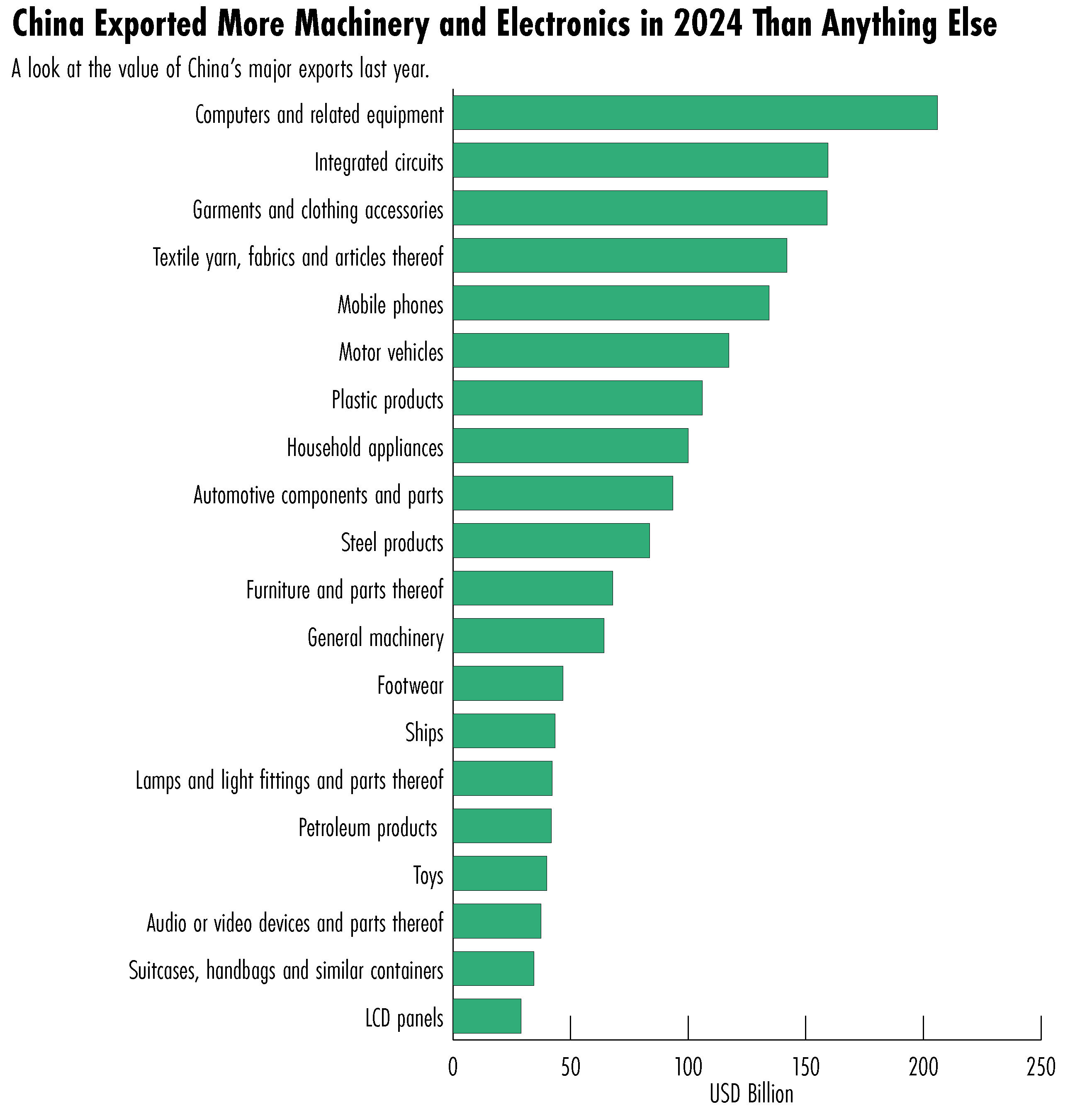 While almost all of the products China sells overseas are manufactured, low-value items no longer make up the majority of exports. Rather, high-value-added products topped China’s exports charts last year.