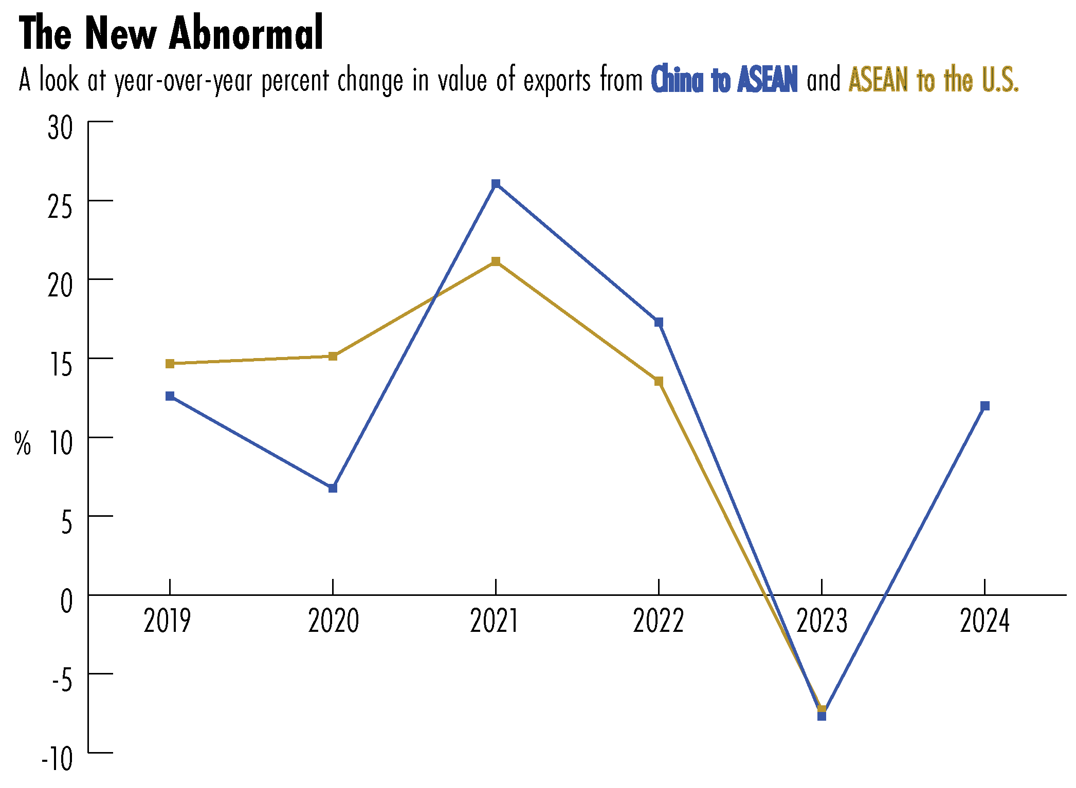 At the same time, the United States has become the largest customer for Southeast Asian goods. As a result, China’s exports to the 10 countries in the Association of Southeast Asian Nations and the bloc’s exports to the U.S. have become closely linked.