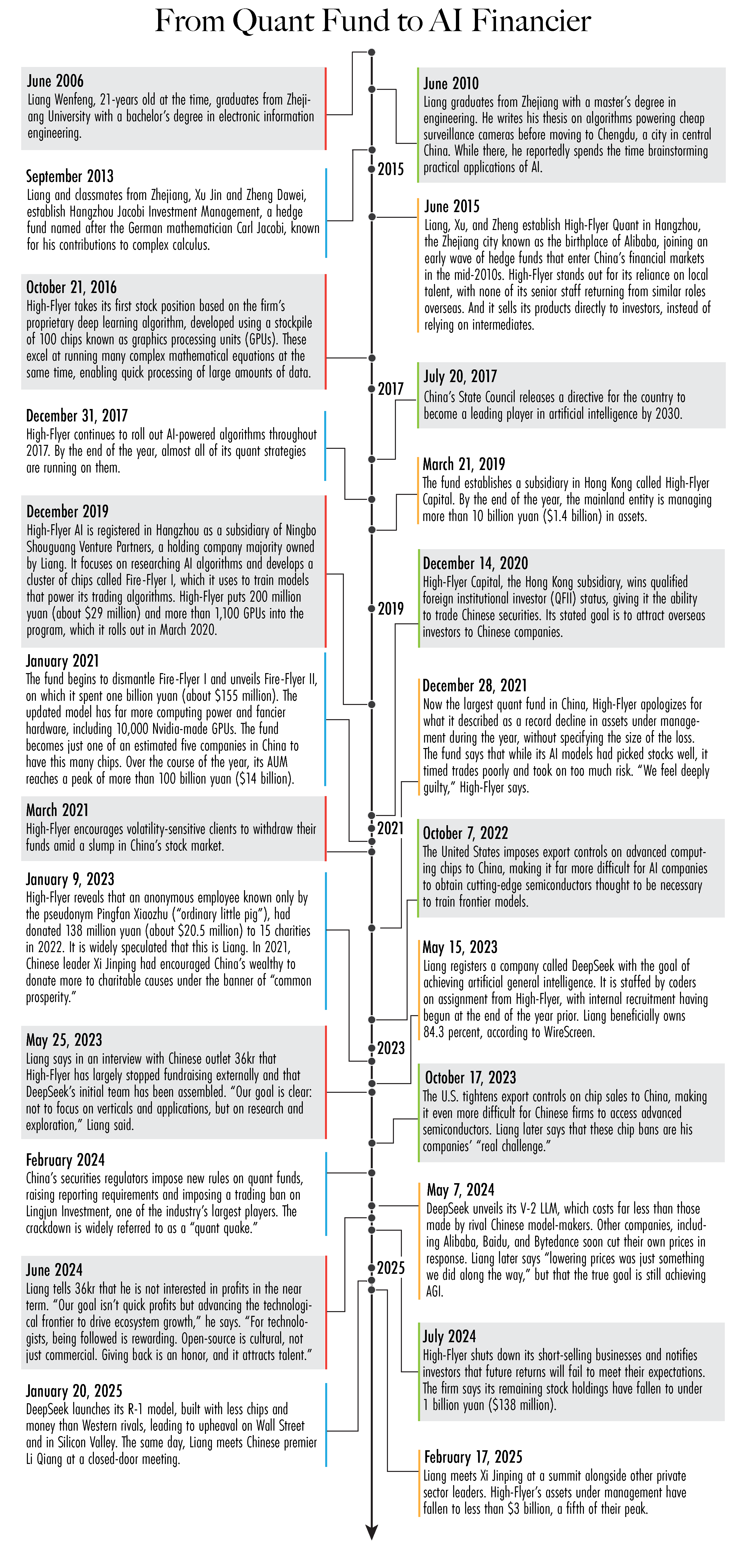 The sudden emergence of DeepSeek as a global leader in artificial intelligence has been one of the surprises of 2025 so far. Just as remarkable is the path the Chinese firm has taken from high finance to high tech in less than ten years.