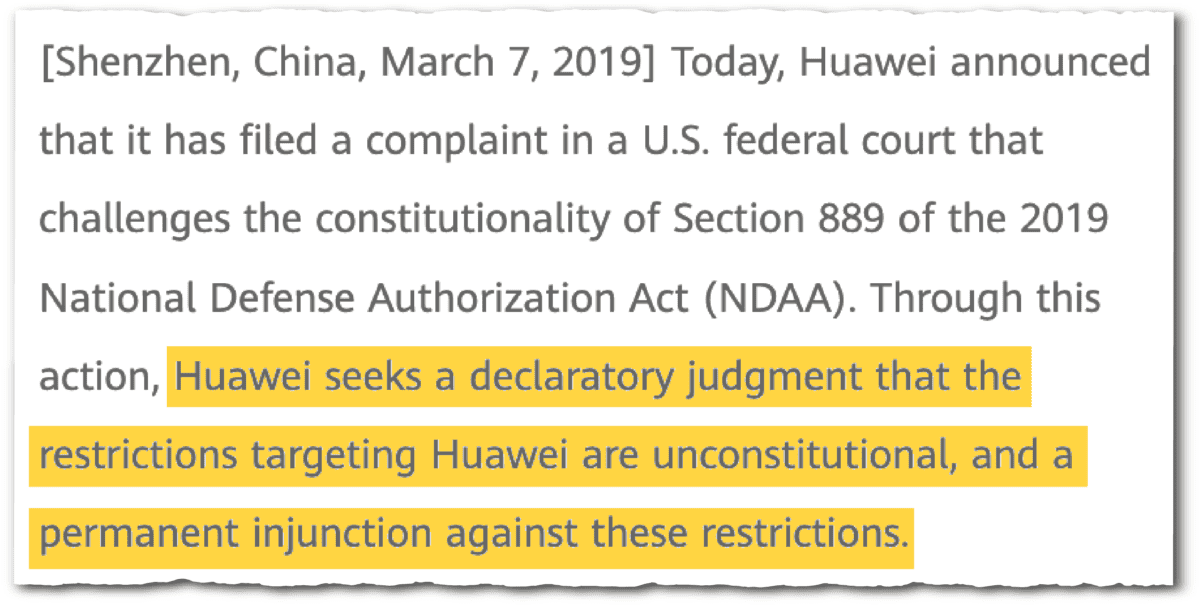 On March 7, 2019, Huawei announced that it had sued the U.S. government ‘for unconstitutional sales restrictions imposed by Congress’. Credit: Huawei