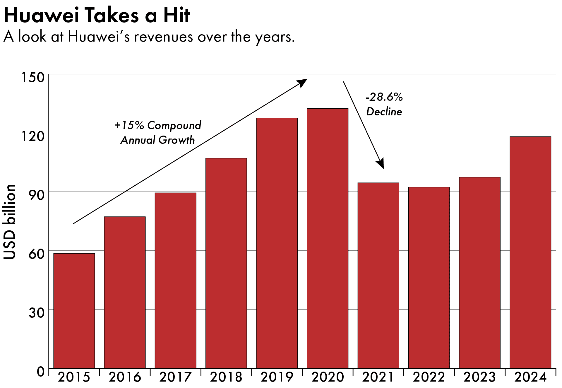Commerce added Huawei to its Entity List in May 2019, making it illegal for U.S. companies to export to Huawei without a special license. But the action hardly made a dent in Huawei’s business. What’s more, it seemed to backfire on U.S. companies: U.S. chipmakers that had invested in the U.S. could no longer sell to Huawei, whereas competitors that had moved manufacturing abroad thrived.