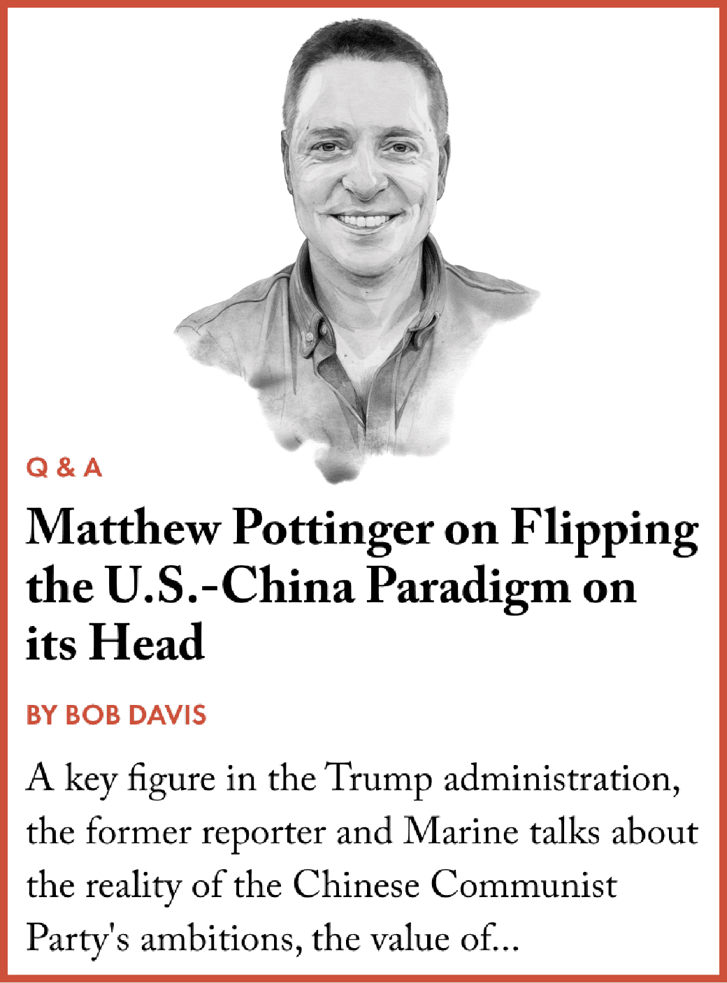 It was April 24, 2019. Springtime in Washington was in its full glory. Yet Matt Pottinger, the top China expert at the Trump National Security Council (NSC), was in a dark mood. Over the past two years, he had painstakingly engineered a major shift in U.S. policy toward China — a pivot that was slowly but surely taking hold in the national security bureaucracy. Washington had finally accepted that Beijing’s “peaceful rise” was not so peaceful after all. China was an adversary, and the U.S. was reorienting its foreign policy to confront the threat.