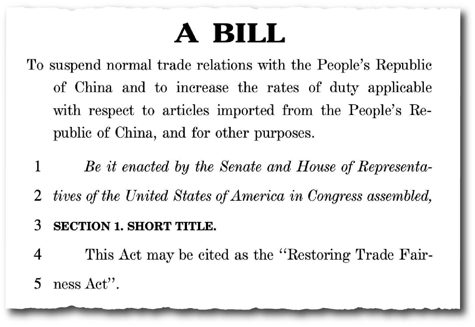 What do you think of the movement which has been backed by some of Trump’s people, to remove Permanent Normal Trading Relations from China. [As part of the U.S. deal with China to join the World Trade Organization in 2001, the U.S. ended its annual review of so-called PNTR, or what was then called Most Favored Nation, for China and to award China the same tariff treatment as other WTO members.]