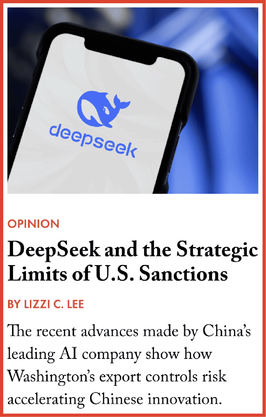 When you look at the export controls, the argument that I would make is that DeepSeek and others are probably benefiting from the last gasps of a more permissive export control regime. DeepSeek was able to buy a lot of U.S. chips that hadn’t been controlled until 2023. The initial controls were in 2022. They were able to take advantage of controls that perhaps were not adequately enforced at the Department of Commerce.