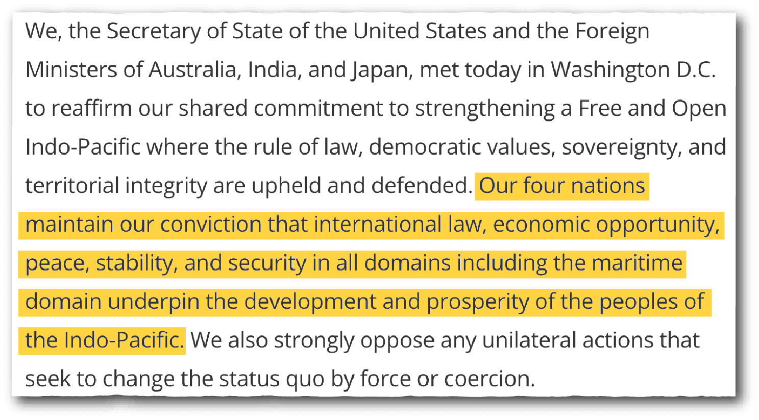 Quad states have their own interests on other issues, including related to Russia. As you mentioned, India is a purchaser of Russian oil. But at the same time, with Asia, I see enormous. commonality of perspective and purpose.