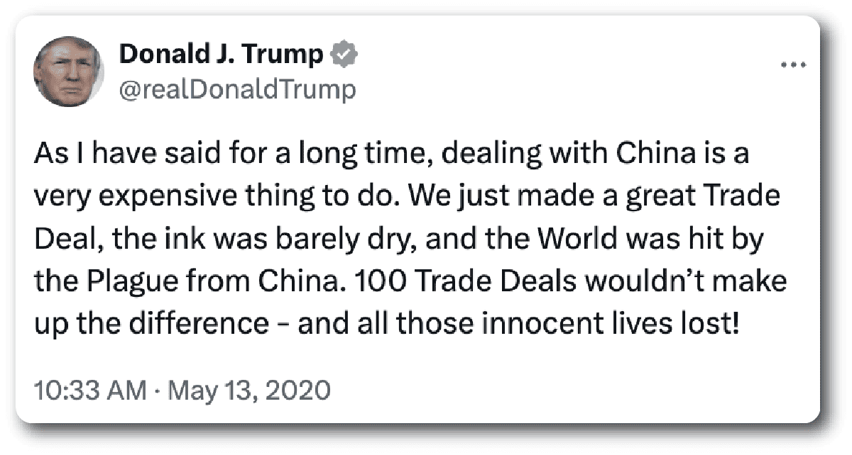 It’s complicated. Covid was a unique moment because President Trump really did blame China and the Chinese Communist Party, which he thought damaged him politically. So, there was an element of personal animus that infused China policy and led to the kind of hawkish correction in 2020.