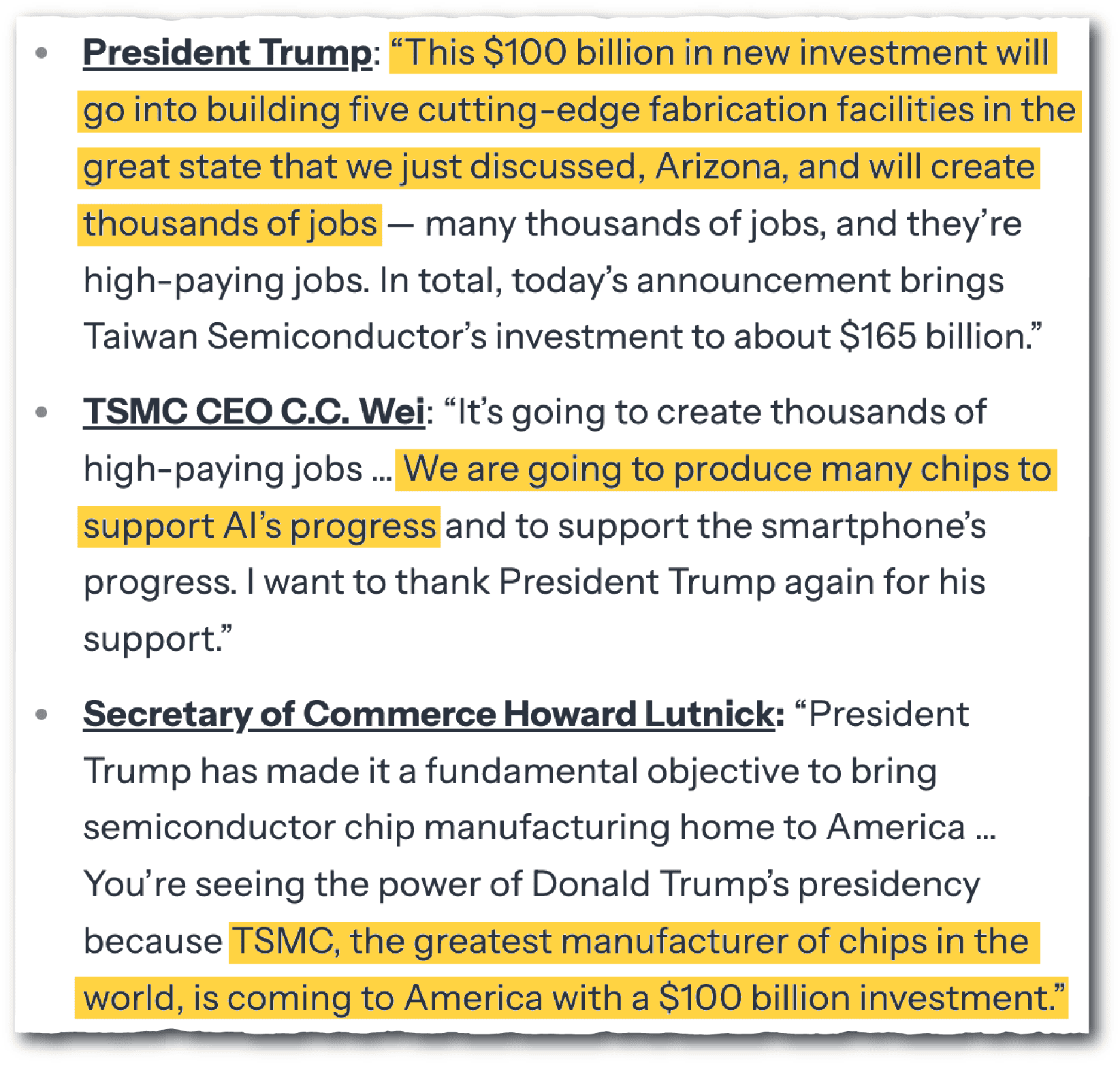 Taiwan is concerned, but Taiwan also has some leverage. They are the world’s leader in semiconductor technology, and the U.S. government wants more Taiwanese investment in the United States. So, they have cards that they can play to try to get an outcome that’s favorable to them.