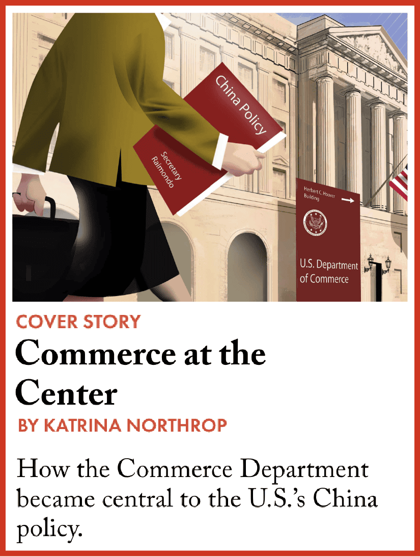 While Commerce was at the forefront of the U.S.’s competitiveness strategy, through initiatives such as CHIPS and Science, and led the way on export controls, we were also early in thinking about how to engage with Chinese counterparts to keep the relationship stable. For example, Secretary Raimondo met with the Minister of Environmental Protection [Huang Runqiu in July 2022]. NOAA is part of the Commerce Department, so there was a natural fit, and I knew this minister was serious from my previous work on China and the environment. He was also the only non-Communist Party member of the government.