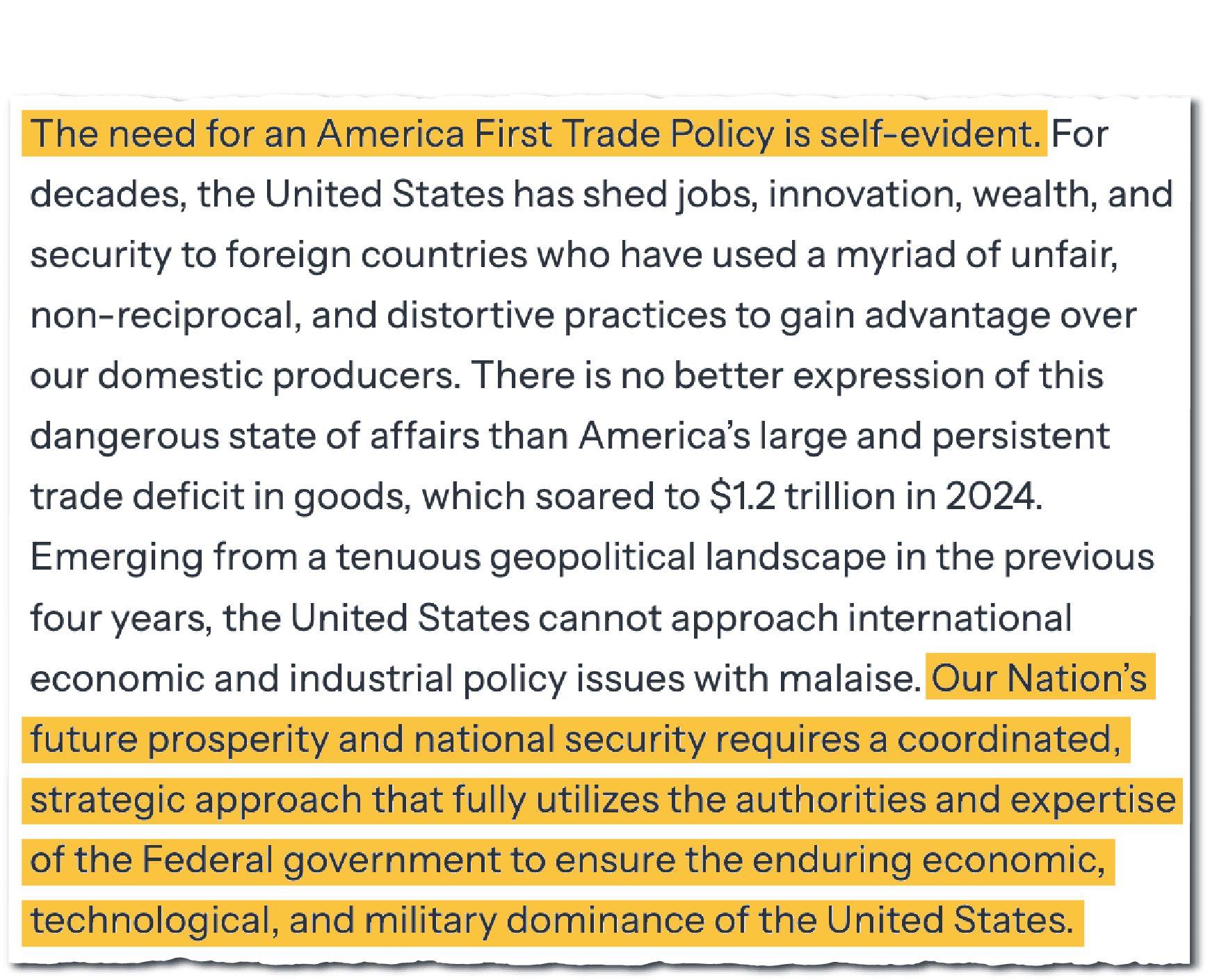 What’s the impact of the tariff plan in the national security realm?