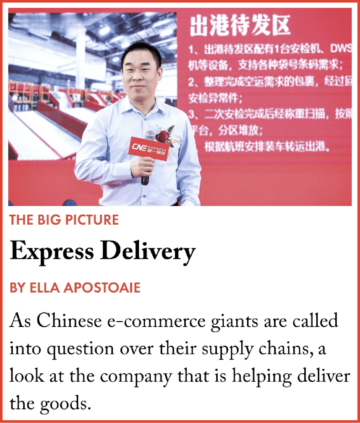 So Chinese companies are making progress in their global expansion. Do you see them becoming a formidable competitor for the likes of FedEx and DHL? And vice versa, are these foreign companies also gaining ground in the Chinese market?