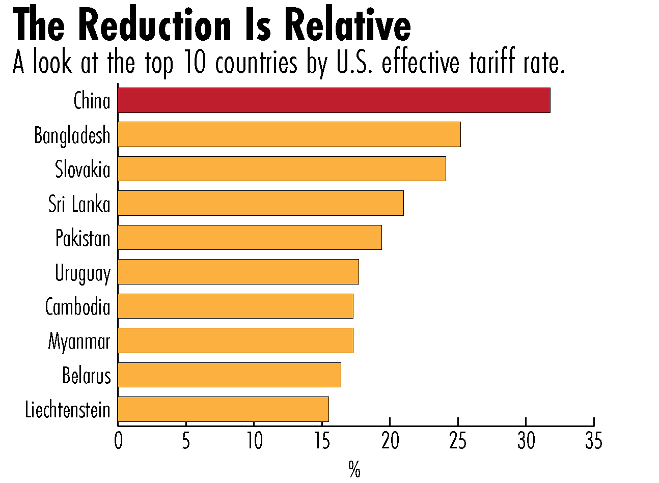 Estimates vary for the current effective U.S. rate on China, but they are generally above 30 percent.