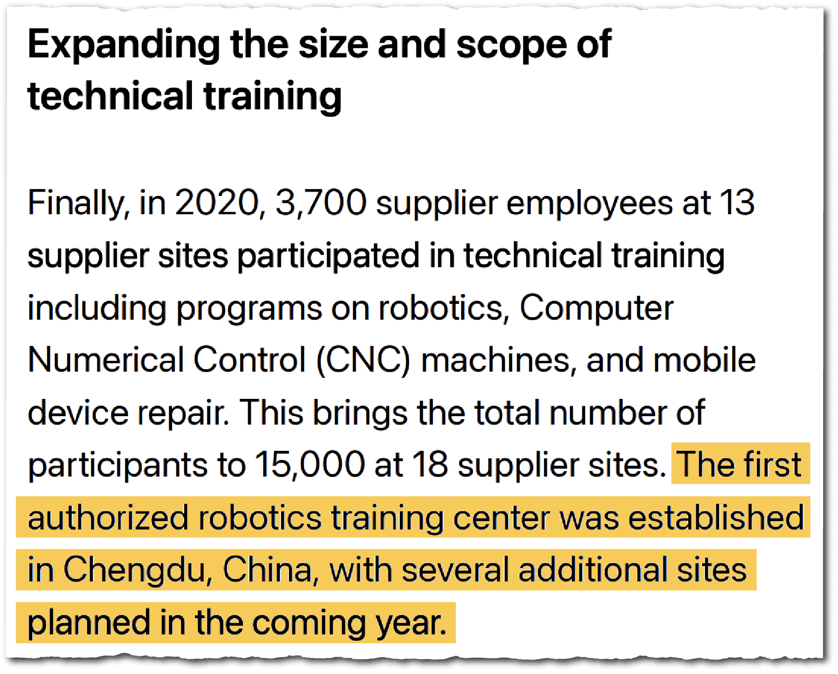If you’re a shareholder, it’s probably worth it. If you’re Apple, you did tremendously well. This is a story of negative externalities. It works really well for Apple, works really well for China. But if you think China is a belligerent threat, it’s deeply problematic that our greatest corporation is training them to such an extent on advanced electronics and automation, which have a dual-use, where they can be used for drone warfare and other military weaponry.